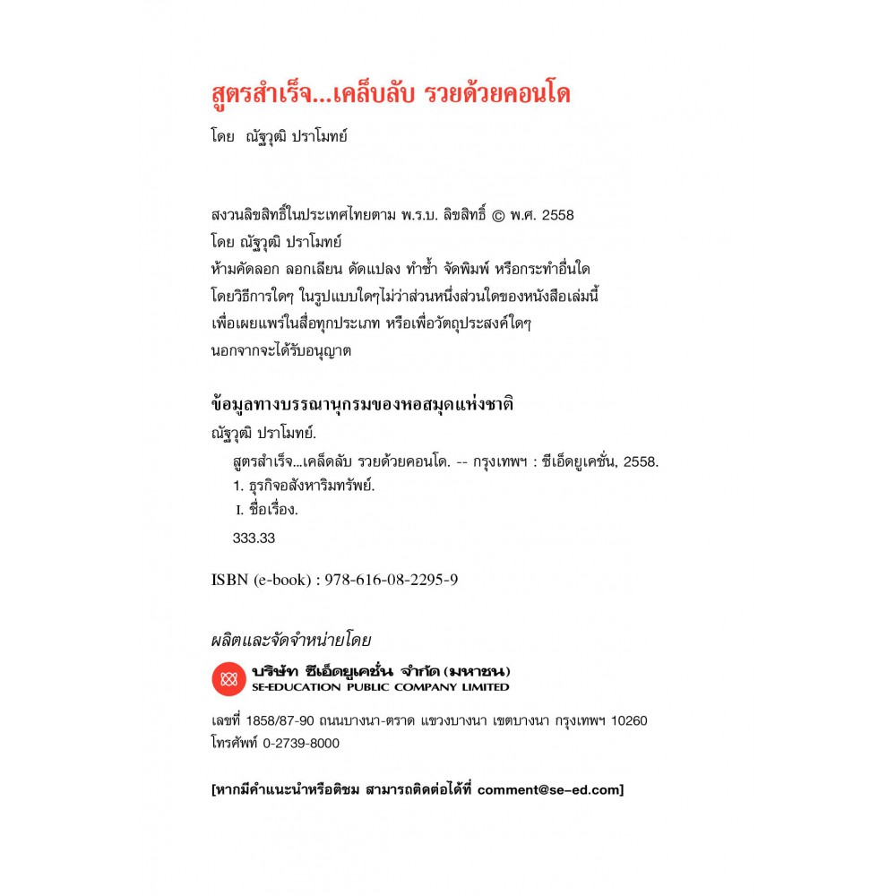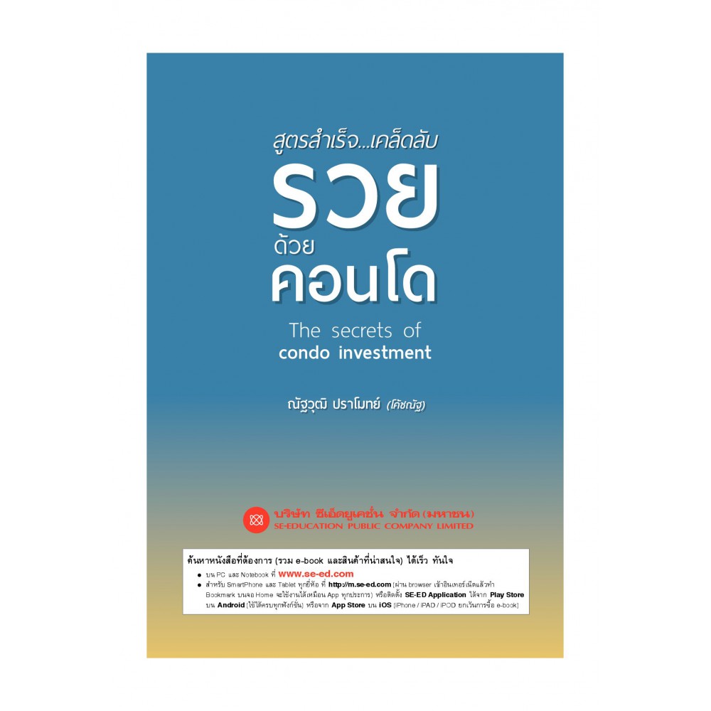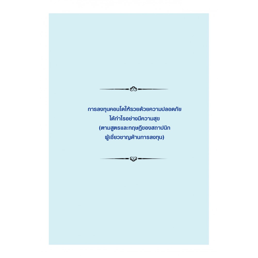 "สูตรสำเร็จ...เคล็ดลับ รวยด้วยคอนโด" เล่มนี้ จะมาเผยเคล็ดลับการสร้างหลักทรัพย์คอนโดมูลค่า 68 ล้านบาท ในเวลาเพียง 3 ปีกว่า ด้วยเงินลงทุนแสนกว่าบาท ไม่ว่าคุณจะอยากซื้อคอนโดเพื่ออยู่อาศัยเอง แต่ไม่รู้หลักในการเลือกซื้อที่ถูกต้อง เคยคิดอยากลงทุนคอนโดให้เช่า แต่กลัวไม่มีคนเช่า เคยอยากลงทุนในคอนโด แต่กลัวขาดทุน ปัญหานี้จะหมดไป ถ้าคุณได้มีโอกาสอ่านหนังสือเล่มนี้