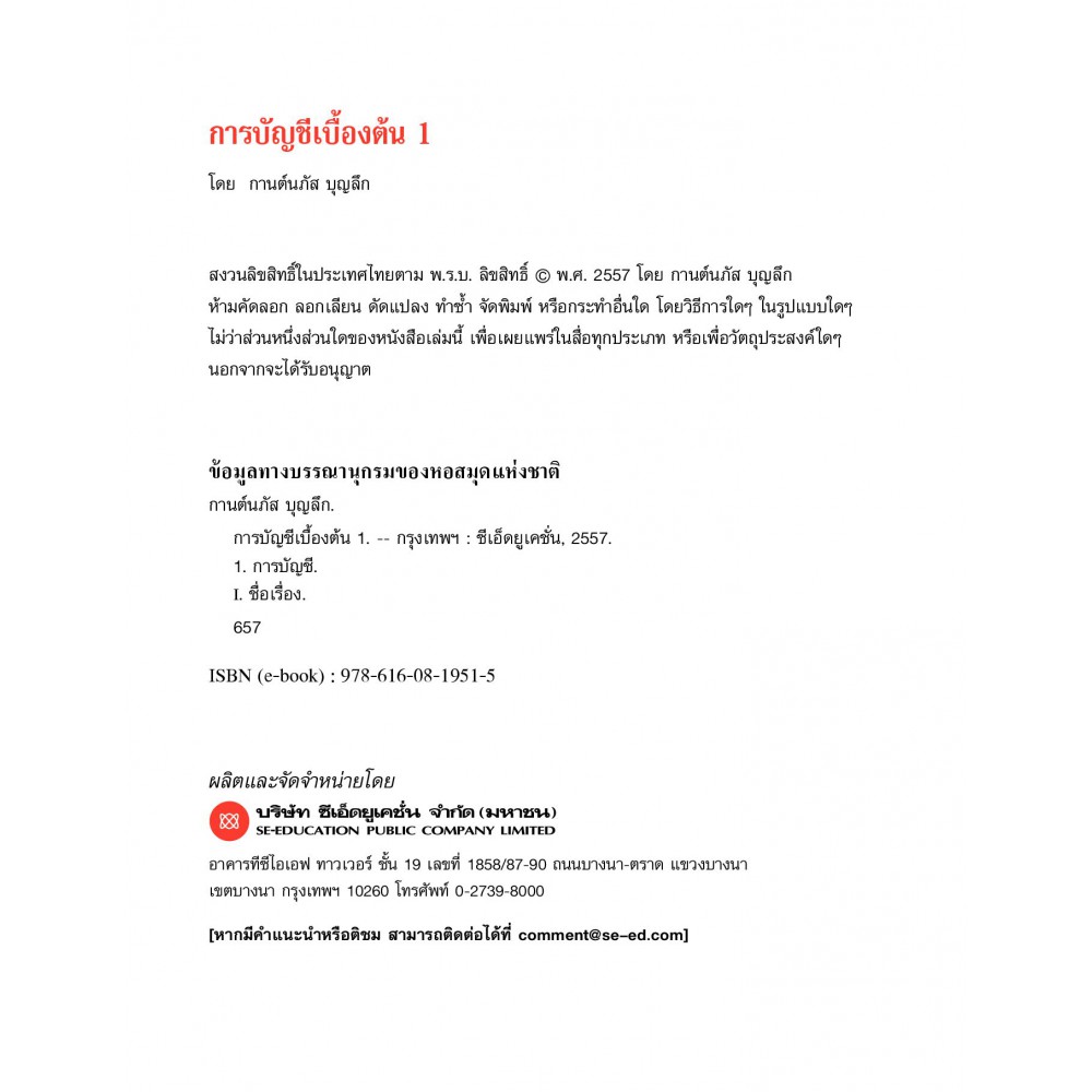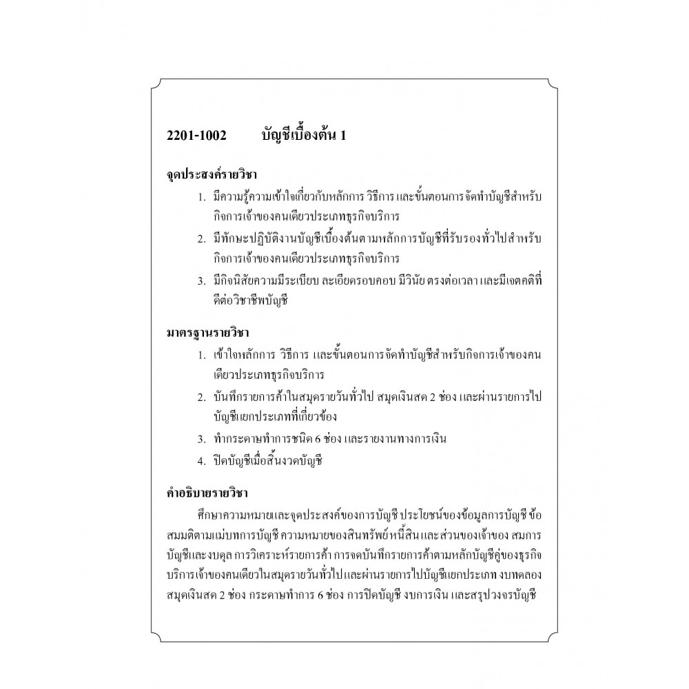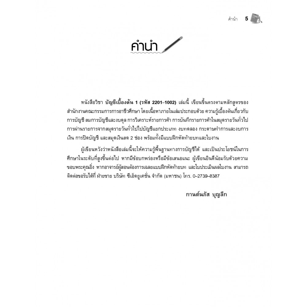 นำเสนอเนื้อหาที่สำคัญเกี่ยวกับความรู้เบื้องต้นเกี่ยวกับการบัญชี สมการบัญชีและงบดุล การวิเคราะห์รายการค้า การบันทึกรายการค้าในสมุดรายวันทั่วไป การผ่านรายจากสมุดรายวันทั่วไปไปบัญชีแยกประเภท งบทดลอง กระดาษทำการและงบการเงิน การปิดบัญชี และสมุดเงินสด 2 ช่อง ภายในเล่มยังมีแบบฝึกหัดและใบงาน เพื่อกระตุ้นให้ผู้เรียนได้ฝึกคิดและแก้ปัญหาได้ไปพร้อมๆ กันอีกด้วย