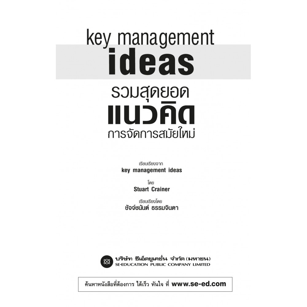 การจัดการสมัยใหม่มีขอบข่ายครอบคลุมประเด็นต่างๆ อย่างกว้างขวาง ทำให้ผู้บริหารทั้งภาครัฐและภาคเอกชนจำเป็นต้องเรียนรู้เพื่อให้เข้าใจและก้าวทันแนวคิดใหม่ๆ ด้านการจัดการ อย่างไรก็ตามข้อจำกัดด้านเวลาและงบประมาณในการพัฒนาตนเองเป็นอุปสรรคสำคัญที่จำกัดโอกาส ทำให้ผู้บริหารไม่สามารถเรียนรู้และเข้าใจแนวคิดด้านการจัดการที่สำคัญๆได้ทุกเรื่อง ซึ่งหนังสือ รวมสุดยอดแนวคิดการจัดการสมัยใหม่ ผู้บริหารอาจสามารถนำไปปรับใช้ประโยชน์ในการทำงานได้