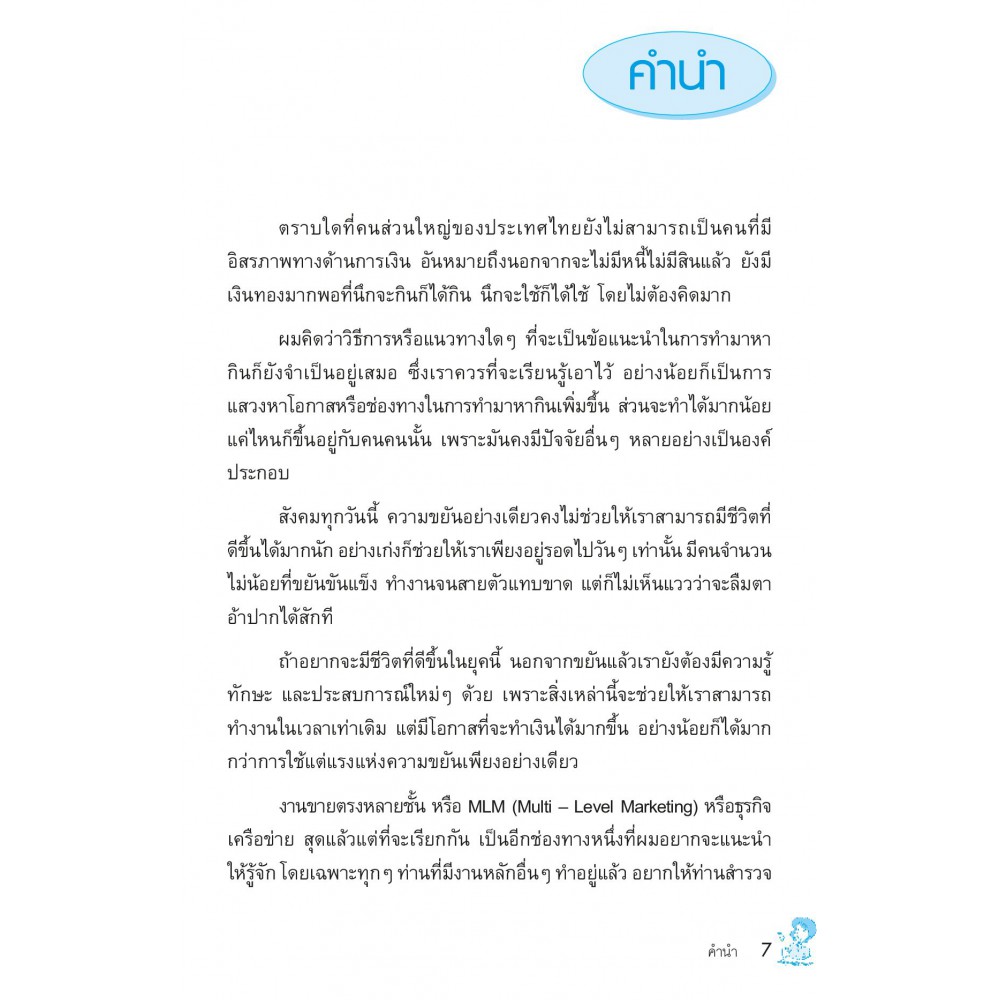 เนื้อหาในเล่มจะทำให้คุณทราบถึงเรื่องราวที่จำเป็นต้องรู้ในการทำธุรกิจขายตรง โดยเฉพาะอย่างยิ่ง ทำธุรกิจกับคนไทยๆ โดยเริ่มจากคนที่ไม่เคยอยู่ในวงการมาก่อน จนถึงขึ้นจะเอาดีและยึดเป็นอาชีพหลัก เพื่อให้ผู้ที่สนใจในธุรกิจนี้รู้วิธีในการทำงานและ แนวทางในการที่จะทำให้ตัวเองประสบความสำเร็จ!