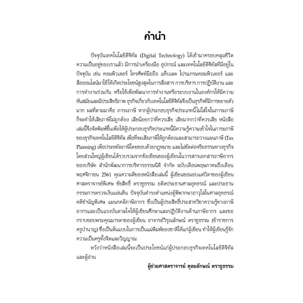 หนังสือเล่มนี้ช่วยให้ผู้ประกอบธุรกิจมีความรู้ความเข้าใจในภาระภาษีของธุรกิจเทคโนโลยีดิจิทัล เพื่อเสียภาษีได้อย่างถูกต้อง