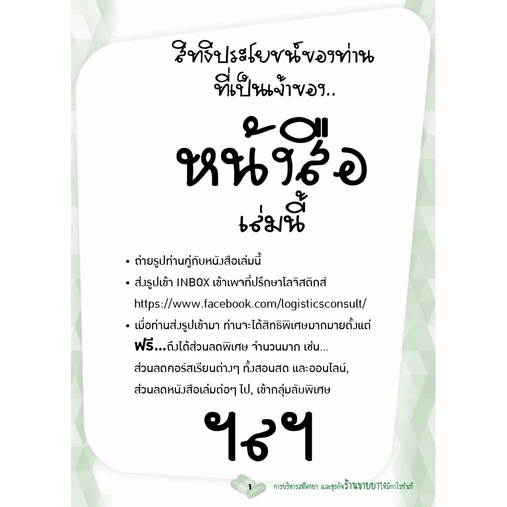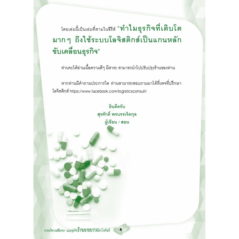 ร้านท่านเจอปัญหาสต๊อกบวมไหม แต่สินค้าขายดีไม่เพียงพอในการขาย ยอดขายดี แต่เงินไม่รู้ไปอยู่ไหน สต๊อกสินค้าของจริงไม่ตรงกับระบบ ทำให้ไม่กล้าขยายกิจการ ถ้าท่านเจอปัญหานี้ หนังสือเล่มนี้เหมาะกับท่านครับ เพราะมันคือการบริหารสต๊อก ธุรกิจร้านขายยาอย่างไรให้มีประสิทธิภาพ