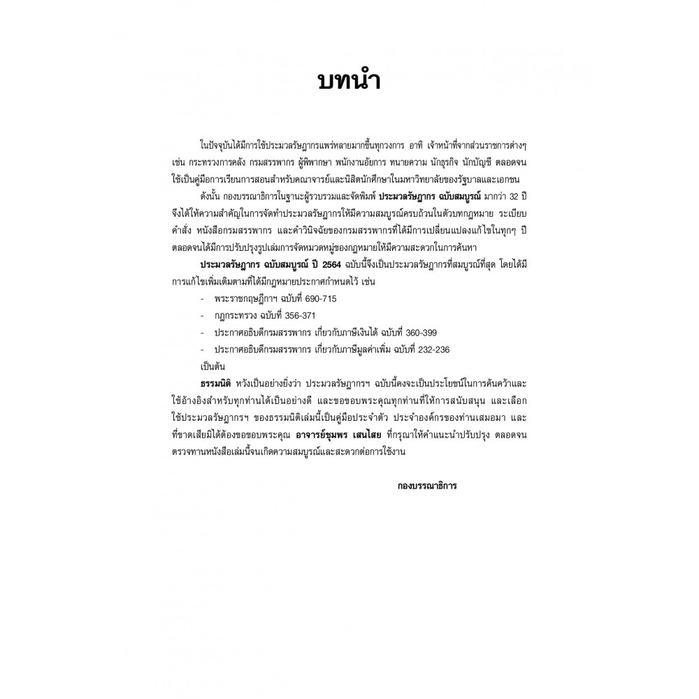 รวมกฎหมายภาษีสรรพากรไว้เพื่อการใช้งานได้อย่างครบถ้วน จัดหมวดหมู่มาตราเป็นระเบียบ สะดวกในการสืบค้น
