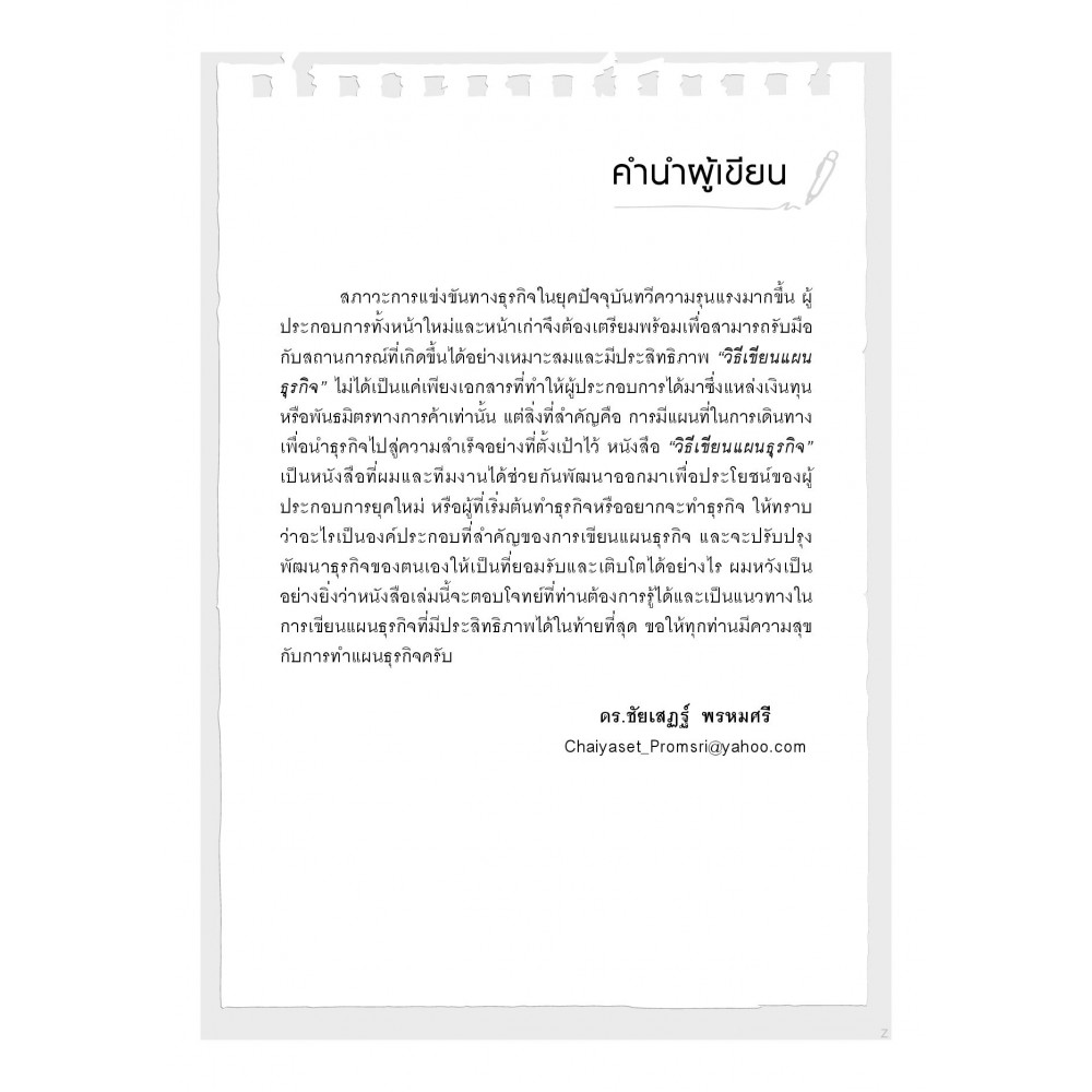 " หนังสือที่จะช่วยให้คุณเรียนรู้แนวทางการเขียนแผนธุรกิจที่ทรงศักยภาพ เป็นประโยชน์ต่อผู้ประกอบการยุคใหม่ หรือผู้ที่เริ่มต้นทำธุรกิจหรืออยากจะทำธุรกิจให้ทราบว่าอะไรเป็นองค์ประกอบสำคัญของการเขียนแผนธุรกิจ และจะปรับปรุงพัฒนาธุรกิจของตนเองให้เป็นที่ยอมรับและเติบโตได้อย่างไร ถ่ายทอดด้วยเนื้อหากระชับ อ่านเข้าใจง่าย และตรงประเด็น เหมาะสำหรับผู้เริ่มต้นธุรกิจ ผู้ประกอบการ เจ้าของกิจการ และผู้ที่ต้องการหาแหล่งเงินทุนและพันธมิตรทางธุรกิจ