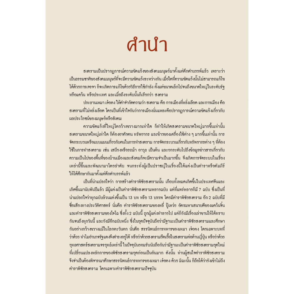เพื่อความเข้าใจที่ถูกต้องลึกซึ้งของแก่นแท้ของสงคราม จึงเป็นโอกาสอันดีที่จะได้เชิญชวนท่านผู้สนใจมาร่วมกันศึกษาพิชัยสงครามไปด้วยกัน เพื่อจะได้เข้าใจสงคราม เข้าใจผลดีผลร้ายของสงคราม และทราบอย่างถ่องแท้ว่า สงครามนั้นยังมีเรื่องของการทำสงคราม การหยุดยั้งสงคราม การทำลายสงคราม และการเอาชนะสงคราม รวมทั้งปัญหาทางการเมืองที่ต่อเนื่องจากสงครามด้วย จึงเป็นโอกาสอันดียิ่งที่จะได้ประกอบกรณียกิจนี้ เพื่อประโยชน์ของพี่น้องร่วมชาติต่อไป และในเรื่องนี้จะถือหลัก “คัมภีร์พิชัยสงคราม” ของซุนวู เป็นหลักในการศึกษาทำความเข้าใจ