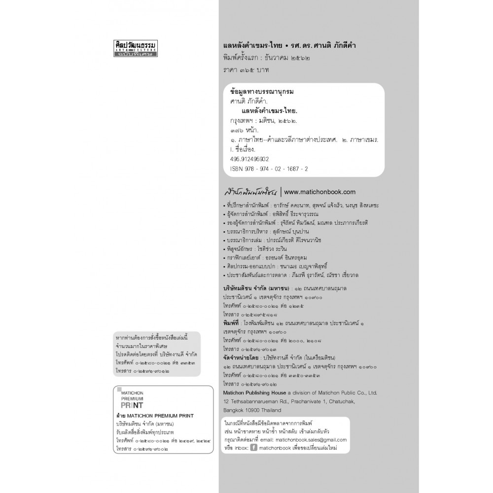 ภาษาไทยไม่ได้เกิดขึ้นอย่างลอยๆ ไม่มีที่มาที่ไป แต่เกิดจากการผสมผสานของหลากหลายภาษา และภาษาเขมรโบราณก็เป็นหนึ่งในนั้น หนังสือเล่มนี้จะพาเราร่วมสำรวจที่มาของคำยืมภาษาเขมร ตั้งแต่แรกเริ่มรับภาษามาใช้ ไล่เรียงลำดับพัฒนาการทางภาษา และสืบหาความหมายดั้งเดิมของคำยืมภาษาเขมรที่คนไทยใช้กันจนชิน