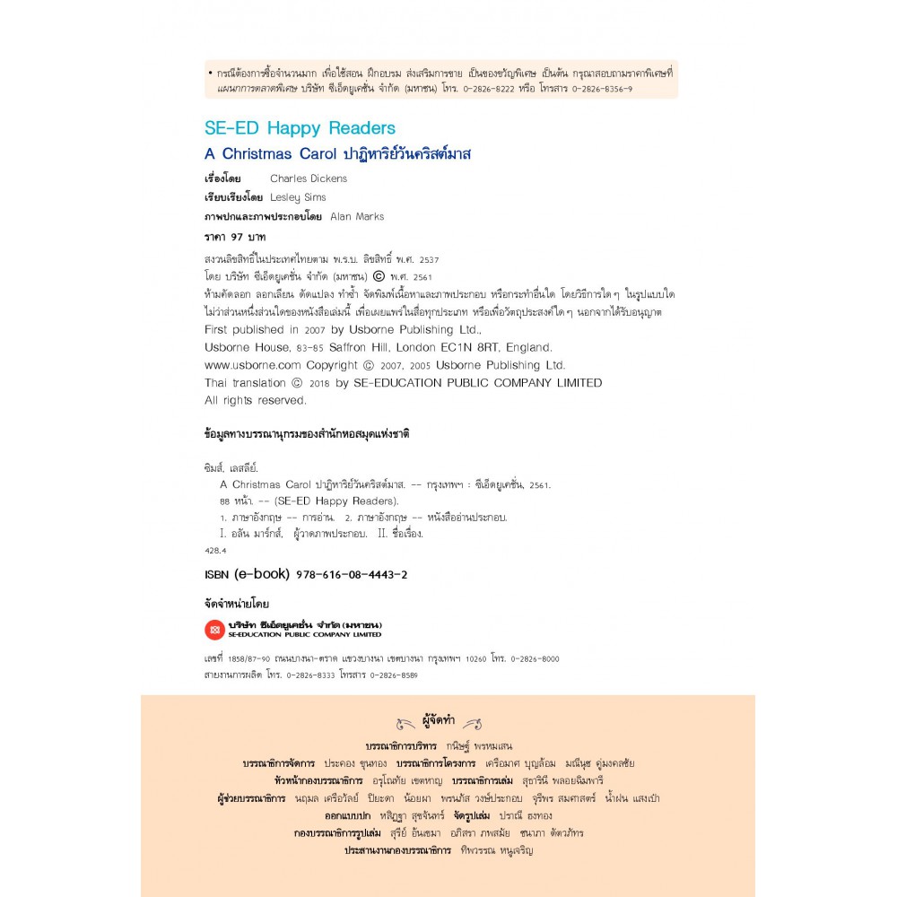 "สกรูจ" เป็นชายแก่ใจร้ายและเห็นแก่ตัว ไม่มีใครชอบเขานัก จนวันหนึ่ง...ปาฏิหาริย์ก็เกิดขึ้นในวันคริสต์มาส เมื่อวิญญาณคริสต์มาสสามตน ปรากฏตัวขึ้น และพาสกรูจไปพบกับเหตุการณ์ต่าง ๆ ที่เขาไม่อาจคาดคิด อะไรกันแน่คือสิ่งที่สกรูจต้องเจอ พบกับคำตอบได้ในเล่ม!