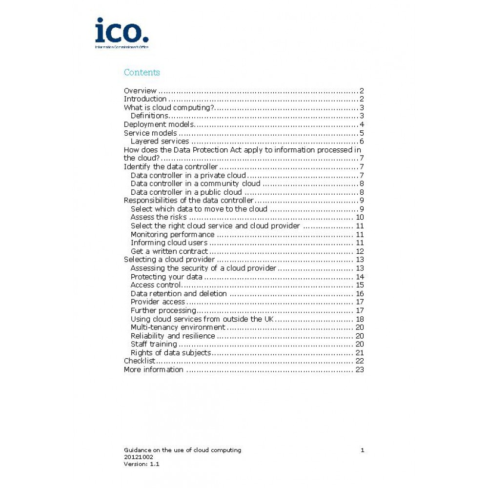 Guidance on the use of cloud computing : ico. Information Commissioner's office