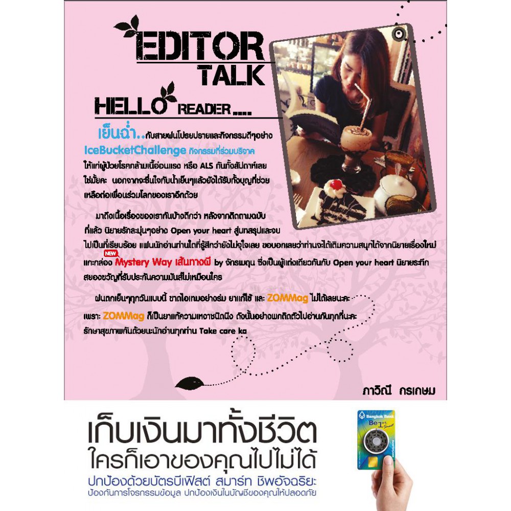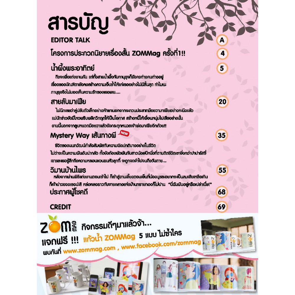 ZOMMag นิตยสารนิยายออนไลน์ยุคใหม่หลากหลายรสชาติมีตั้งแต่รสหวานฉ่ำของนิยายรักซึ้งกินใจ รสเปรี้ยวอมหวานของนิยายรักกุ๊กกิ๊ก และรสเปรี้ยวซ่าชวนเปรี๊ยวกรามของนิยายสืบสวน ไม่ว่าจะรสชาติไหน ผลไม้ไรเหลี่ยมลูกนี้ก็พร้อมเสริฟให้ฟินทุกความอร่อยได้แล้ววันนี้ !!Slogan - ZOMMag ผลไม้ไร้เหลี่ยม!! : peoplemedia