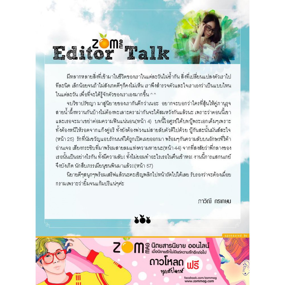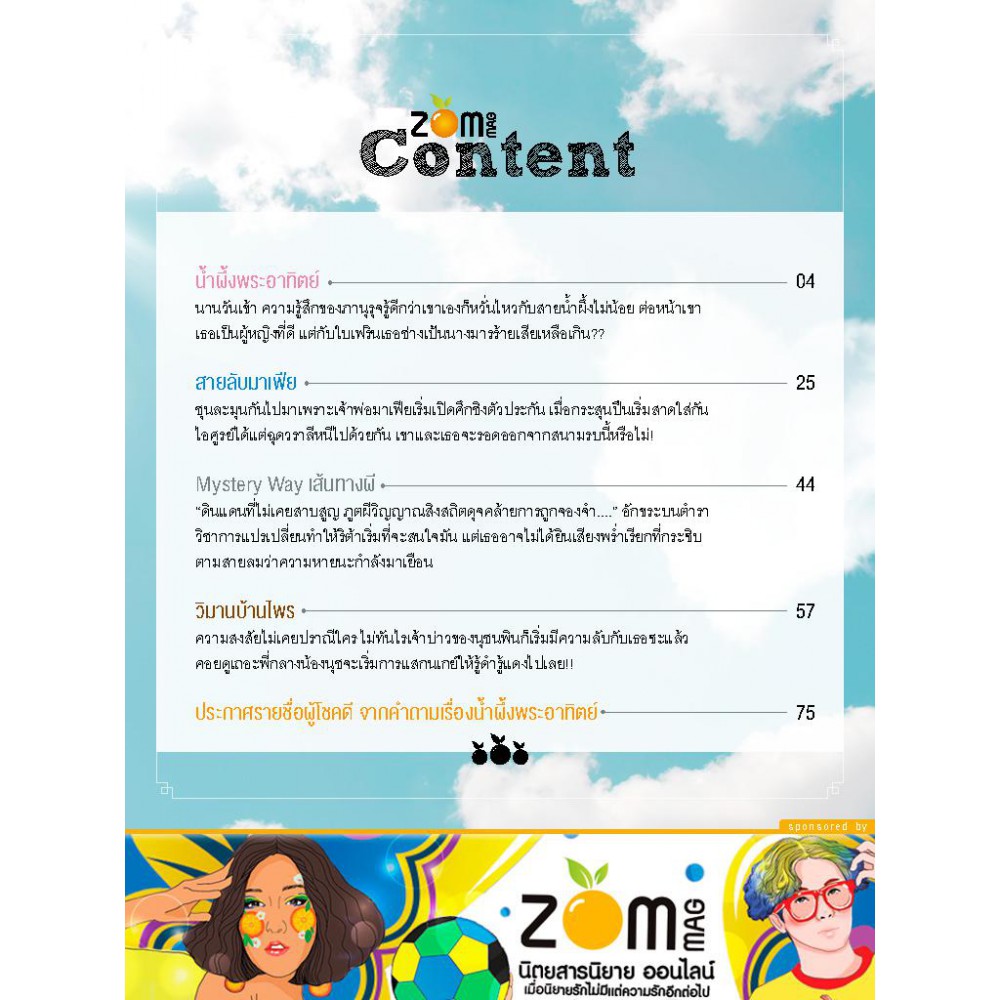 ZOMMag นิตยสารนิยายออนไลน์ยุคใหม่หลากหลายรสชาติมีตั้งแต่รสหวานฉ่ำของนิยายรักซึ้งกินใจ รสเปรี้ยวอมหวานของนิยายรักกุ๊กกิ๊ก และรสเปรี้ยวซ่าชวนเปรี๊ยวกรามของนิยายสืบสวน ไม่ว่าจะรสชาติไหน ผลไม้ไรเหลี่ยมลูกนี้ก็พร้อมเสริฟให้ฟินทุกความอร่อยได้แล้ววันนี้ !!Slogan - ZOMMag ผลไม้ไร้เหลี่ยม!! : peoplemedia
