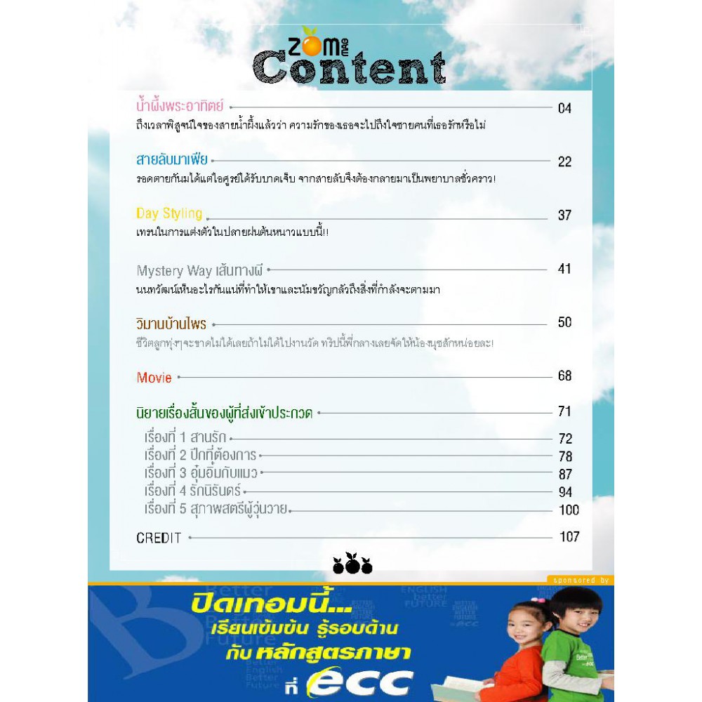 ZOMMag นิตยสารนิยายออนไลน์ยุคใหม่หลากหลายรสชาติมีตั้งแต่รสหวานฉ่ำของนิยายรักซึ้งกินใจ รสเปรี้ยวอมหวานของนิยายรักกุ๊กกิ๊ก และรสเปรี้ยวซ่าชวนเปรี๊ยวกรามของนิยายสืบสวน ไม่ว่าจะรสชาติไหน ผลไม้ไรเหลี่ยมลูกนี้ก็พร้อมเสริฟให้ฟินทุกความอร่อยได้แล้ววันนี้ !!Slogan - ZOMMag ผลไม้ไร้เหลี่ยม!! : peoplemedia