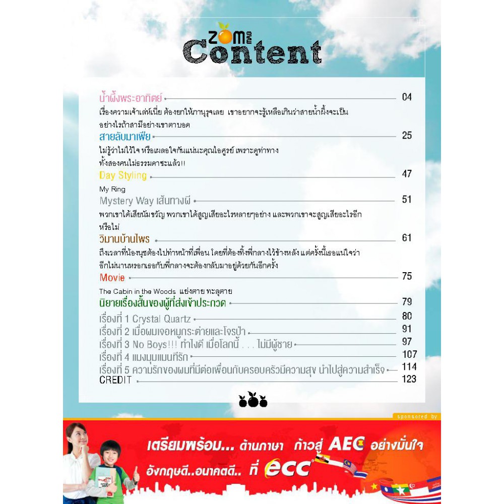 ZOMMag นิตยสารนิยายออนไลน์ยุคใหม่หลากหลายรสชาติมีตั้งแต่รสหวานฉ่ำของนิยายรักซึ้งกินใจ รสเปรี้ยวอมหวานของนิยายรักกุ๊กกิ๊ก และรสเปรี้ยวซ่าชวนเปรี๊ยวกรามของนิยายสืบสวน ไม่ว่าจะรสชาติไหน ผลไม้ไรเหลี่ยมลูกนี้ก็พร้อมเสริฟให้ฟินทุกความอร่อยได้แล้ววันนี้ !!Slogan - ZOMMag ผลไม้ไร้เหลี่ยม!! : peoplemedia