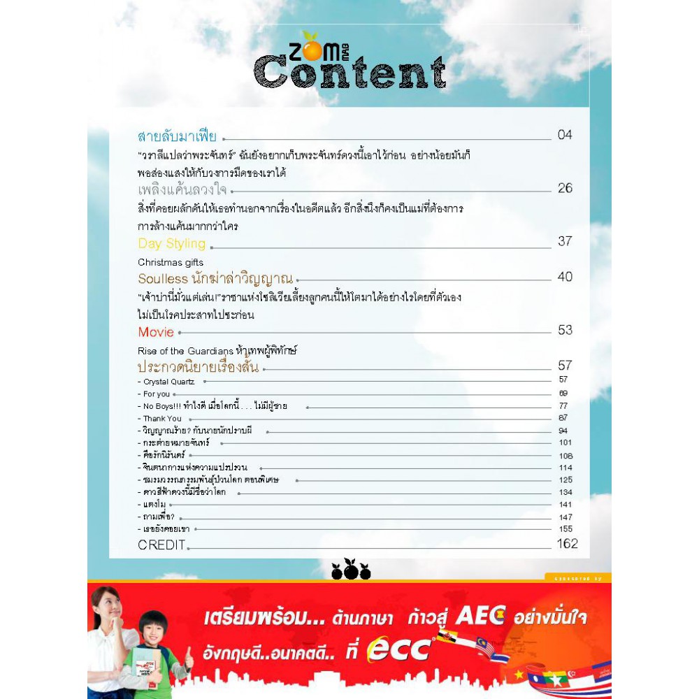 ZOMMag นิตยสารนิยายออนไลน์ยุคใหม่หลากหลายรสชาติมีตั้งแต่รสหวานฉ่ำของนิยายรักซึ้งกินใจ รสเปรี้ยวอมหวานของนิยายรักกุ๊กกิ๊ก และรสเปรี้ยวซ่าชวนเปรี๊ยวกรามของนิยายสืบสวน ไม่ว่าจะรสชาติไหน ผลไม้ไรเหลี่ยมลูกนี้ก็พร้อมเสริฟให้ฟินทุกความอร่อยได้แล้ววันนี้ !!Slogan - ZOMMag ผลไม้ไร้เหลี่ยม!! : peoplemedia