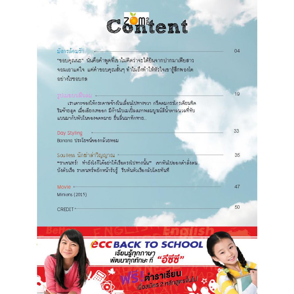 ZOMMag นิตยสารนิยายออนไลน์ยุคใหม่หลากหลายรสชาติมีตั้งแต่รสหวานฉ่ำของนิยายรักซึ้งกินใจ รสเปรี้ยวอมหวานของนิยายรักกุ๊กกิ๊ก และรสเปรี้ยวซ่าชวนเปรี๊ยวกรามของนิยายสืบสวน ไม่ว่าจะรสชาติไหน ผลไม้ไรเหลี่ยมลูกนี้ก็พร้อมเสริฟให้ฟินทุกความอร่อยได้แล้ววันนี้ !!Slogan - ZOMMag ผลไม้ไร้เหลี่ยม!! : peoplemedia