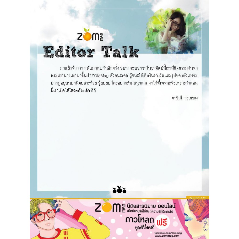ZOMMag นิตยสารนิยายออนไลน์ยุคใหม่หลากหลายรสชาติมีตั้งแต่รสหวานฉ่ำของนิยายรักซึ้งกินใจ รสเปรี้ยวอมหวานของนิยายรักกุ๊กกิ๊ก และรสเปรี้ยวซ่าชวนเปรี๊ยวกรามของนิยายสืบสวน ไม่ว่าจะรสชาติไหน ผลไม้ไรเหลี่ยมลูกนี้ก็พร้อมเสริฟให้ฟินทุกความอร่อยได้แล้ววันนี้ !!Slogan - ZOMMag ผลไม้ไร้เหลี่ยม!! : peoplemedia