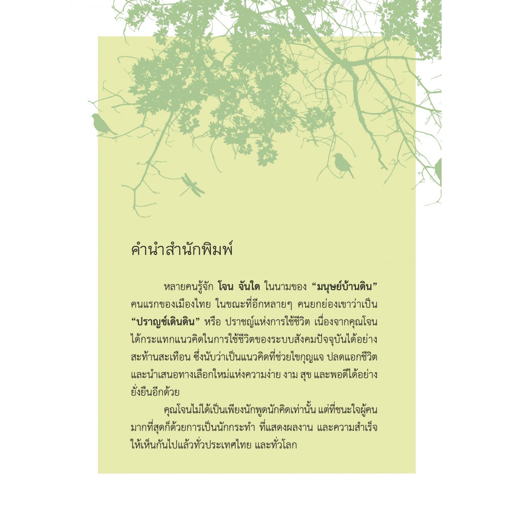 หลายคนรู้จัก โจน จันใด ในนามของ “มนุษย์บ้านดิน” คนแรกของเมืองไทย ในขณะที่อีกหลายๆ คนยกย่องเขาว่าเป็น “ปราญช์เดินดิน” หรือ ปราชญ์แห่งการใช้ชีวิต เนื่องจากคุณโจนได้กระแทกแนวคิดในการใช้ชีวิตของระบบสังคมปัจจุบันได้อย่างสะท้านสะเทือน ซึ่งนับว่าเป็นแนวคิดที่ช่วยไขกุญแจ ปลดแอกชีวิตและนำเสนอทางเลือกใหม่แห่งความง่าย งาม สุข และพอดีได้อย่างยั่งยืนอีกด้วย