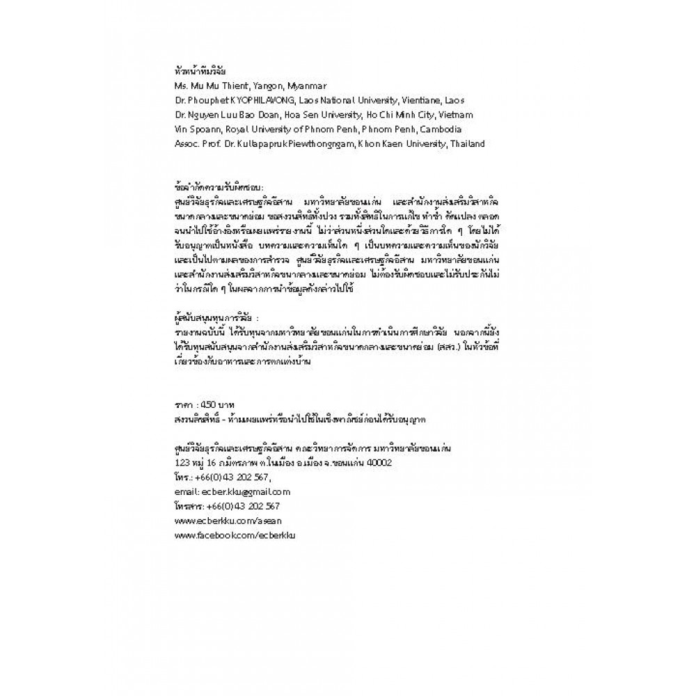 ผู้แต่ง : Esaan Center for Business and Economic Research Khon Kaen University, Thailand