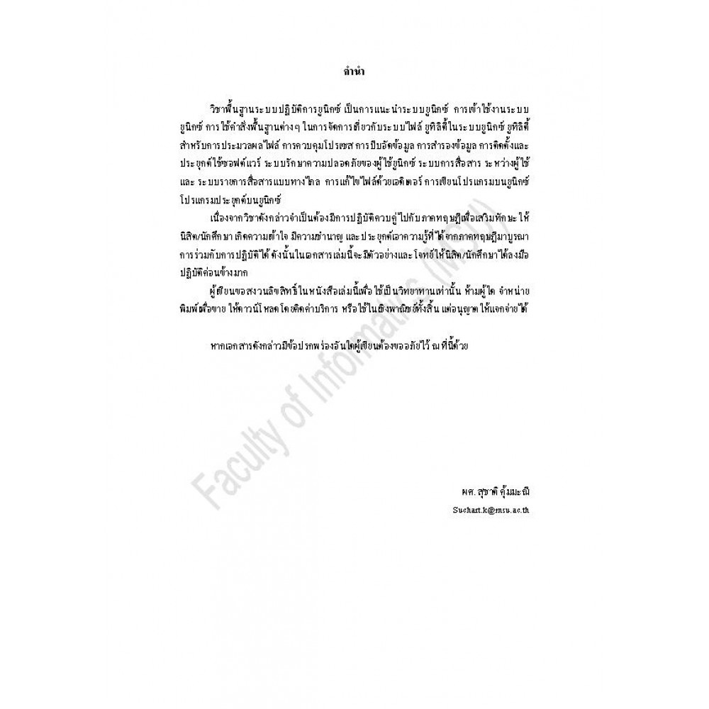 วิชาพื้นฐานระบบปฎิบัติการยูนิกซ์ จำเป็นต้องมีการปฏิบัติควบคู่ไปกับภาคทฤษฎี เพื่อเสริมทักษะให้ นิสิ ต/นักศึกษา เกิดความเข้าใจ มีความชำนาญ และประยุกต์เอาความรู้ที่ได้จากภาคทฤษฎีมาบูรณาการร่วมกับการปฏิบัติได้ ดังนั้นในเอกสารเล่มนี้จะมีตัวอย่างและโจทย์ให้นิสิต/นักศึกษาได้ลงมือ ปฏิบัติค่อนข้างมาก