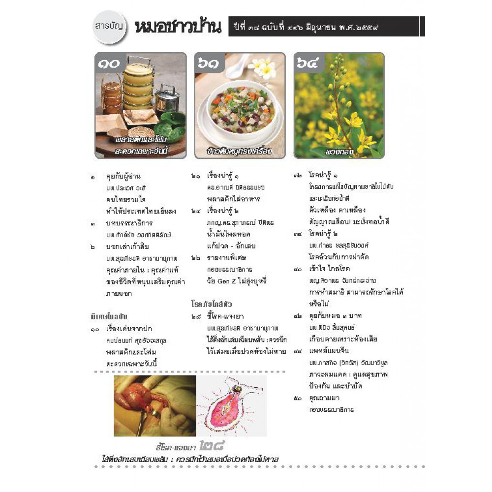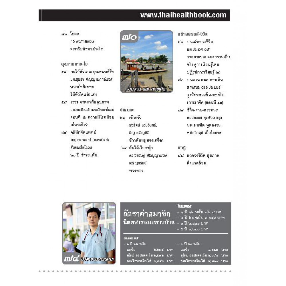 นิตยสารหมอชาวบ้านเป็นหนังสือสุขภาพประจำทุกครอบครัว ที่ได้นำเสนอคุณภาพเนื้อหาที่ถูกต้องมาเป็นระยะเวลากว่า 35 ปี เหมาะกับทุกเพศทุกวัยที่รักสุขภาพและการป้องกัน เพื่อชีวิต สุขภาพ สิ่งแวดล้อม : หมอชาวบ้าน