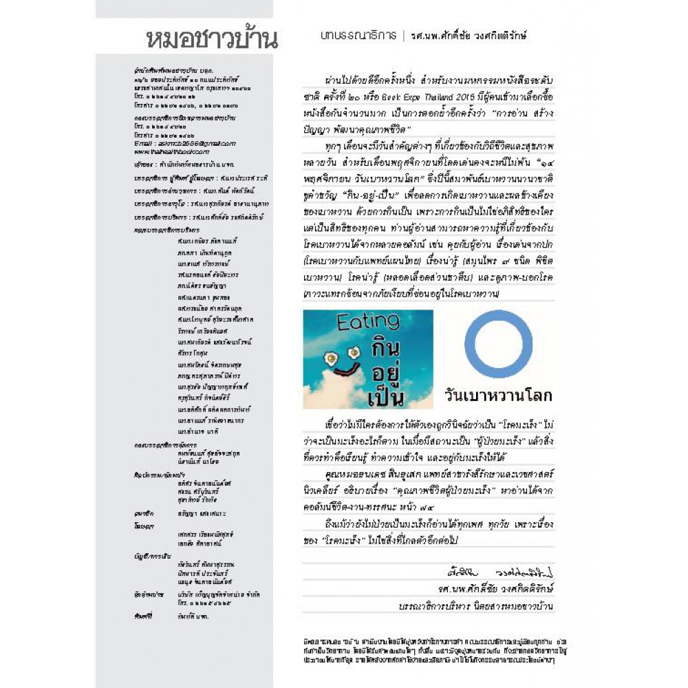 นิตยสารหมอชาวบ้านเป็นหนังสือสุขภาพประจำทุกครอบครัว ที่ได้นำเสนอคุณภาพเนื้อหาที่ถูกต้องมาเป็นระยะเวลากว่า 35 ปี เหมาะกับทุกเพศทุกวัยที่รักสุขภาพและการป้องกัน : หมอชาวบ้าน