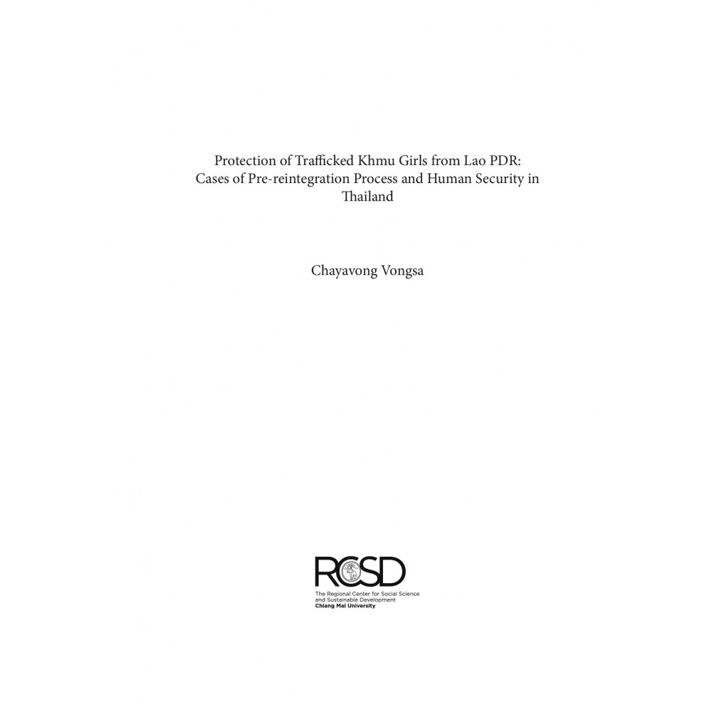 This study discusses the issue of human trafficking, which focuses on Khmu girls who are trafficked into Thailand. It explores what mechanisms of protection are offered to Khmu victims of human trafficking to reach an approach of sustainable reintegration into their places of origin in order to ensure their human security. There are many Khmu girls from Luang Namtha, the northern poorest province in Laos, who move to Thailand to seek new opportunities. In 2014, there are 150 Khmu girls who are victims of human trafficking in shelter in Thailand. The objectives of this study are: 1) to study protection and prosecution of Khmu girls who are victims of human trafficking, especially the victim’s identification process; 2) to examine protection mechanisms leading to sustainable reintegration, which focus on adult literacy and vocational training programs; and 3) to study prospects of social and economic reintegration of Khmu girl victims of human trafficking. This study bases on data collected through qualitative research methods from primary and secondary sources, in-depth interviews with trafficked Khmu girls and participant observation for pre- reintegration in the shelter. It was found that case studies comprise of both sex and labor trafficked victims. They were rescued from the workplaces and transferred to shelter after they identified. All victims were protected in prosecution process and they were informed of the rights of victims, including rights to compensation and access to interpreter. In the shelter, they had a chance to participate in pre-reintegration program, both language and vocational training, which were supposed to enable their sustainable livelihood when they return to Laos. Considering victim’s security while they were in shelter, they had adequate access to food provided by shelter. Also the vegetables were grown by victims themselves. They also had access to healthcare, both physical and psychological, but other aspects of human security were not examined due to limitation of time.
