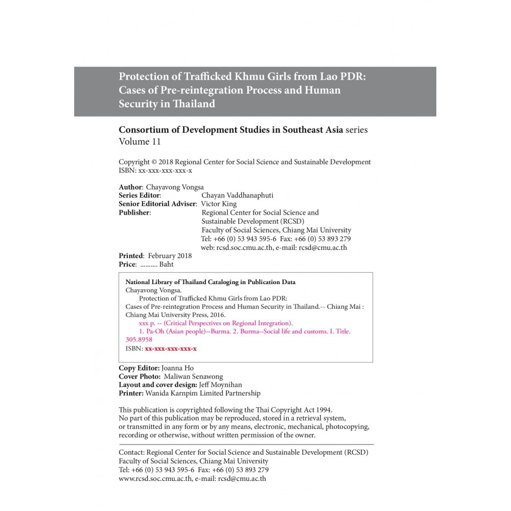 CDSSEA 11 PROTECTION OF TRAFFICKED KHMU GIRLS FROM LAO PDR: CASES OF PRE-REINTEGRATION PROCESS AND HUMAN SECURITY IN THAILAND