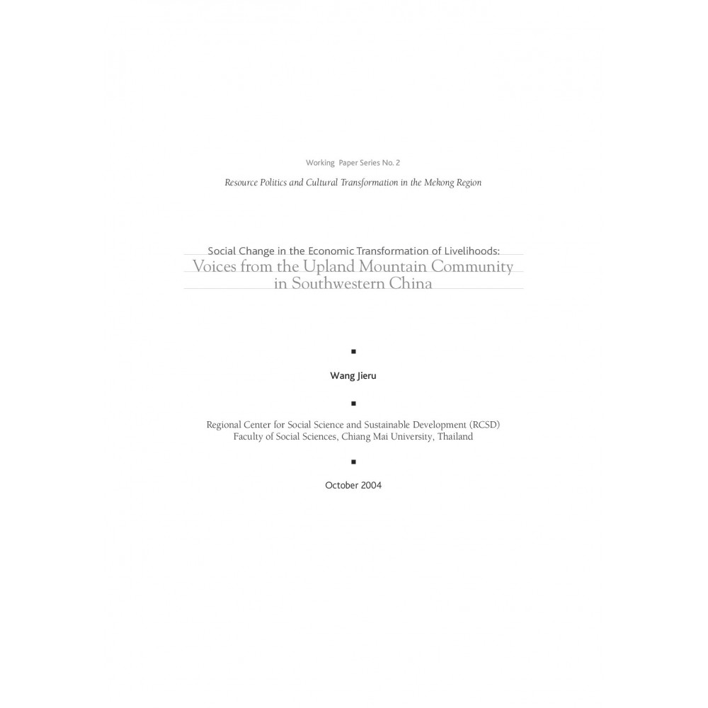 Social Change in the Economic Transformation of Livelihoods: Voices From the Upland Mountain Community in Southwestern China