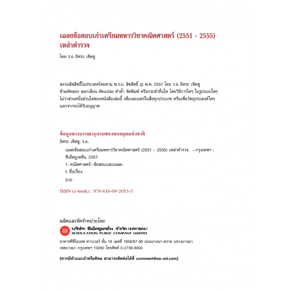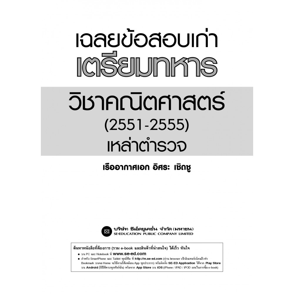 หนังสือ เฉลยข้อสอบเก่าเตรียมทหารวิชาคณิตศาสตร์ (2551-2555) เหล่าตำรวจ ได้รวบรวมข้อสอบ และวิธีการทำโจทย์วิชาคณิตศาสตร์ในการสอบเช้าเป็นนักเรียนเตรียมทหาร เหล่าตำรวจ ตั้งแต่ปี พ.ศ. 2551 - 2555 ด้วยการนำเสนอแนวคิดและวิธีการแก้โจทย์ปัญหาแบบละเอียดสุดๆ โดยในหลายข้อได้แทรกความรู้พื้นฐานที่จำเป็นสำหรับการทำโจทย์ข้อนั้นๆ เอาไว้ด้วย ซึ่งผู้อ่านสามารถฝึกทำโจทย์ ฝึกคำนวณ ฝึกการวิเคราะห์ปัญหา และฝึกแก้ไขโจทย์ปัญหาในเวลาที่จำกัด โดยเฉลยบางข้อยังมีการวาดรูปประกอบเพิ่มเพื่อให้ผู้อ่านได้เห็นภาพ และสามารถเข้าใจโจทย์และเฉลยวิธีทำได้ดีขึ้น