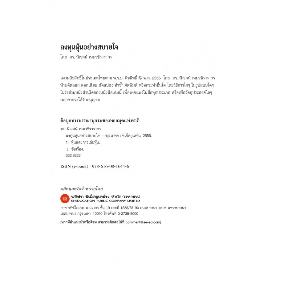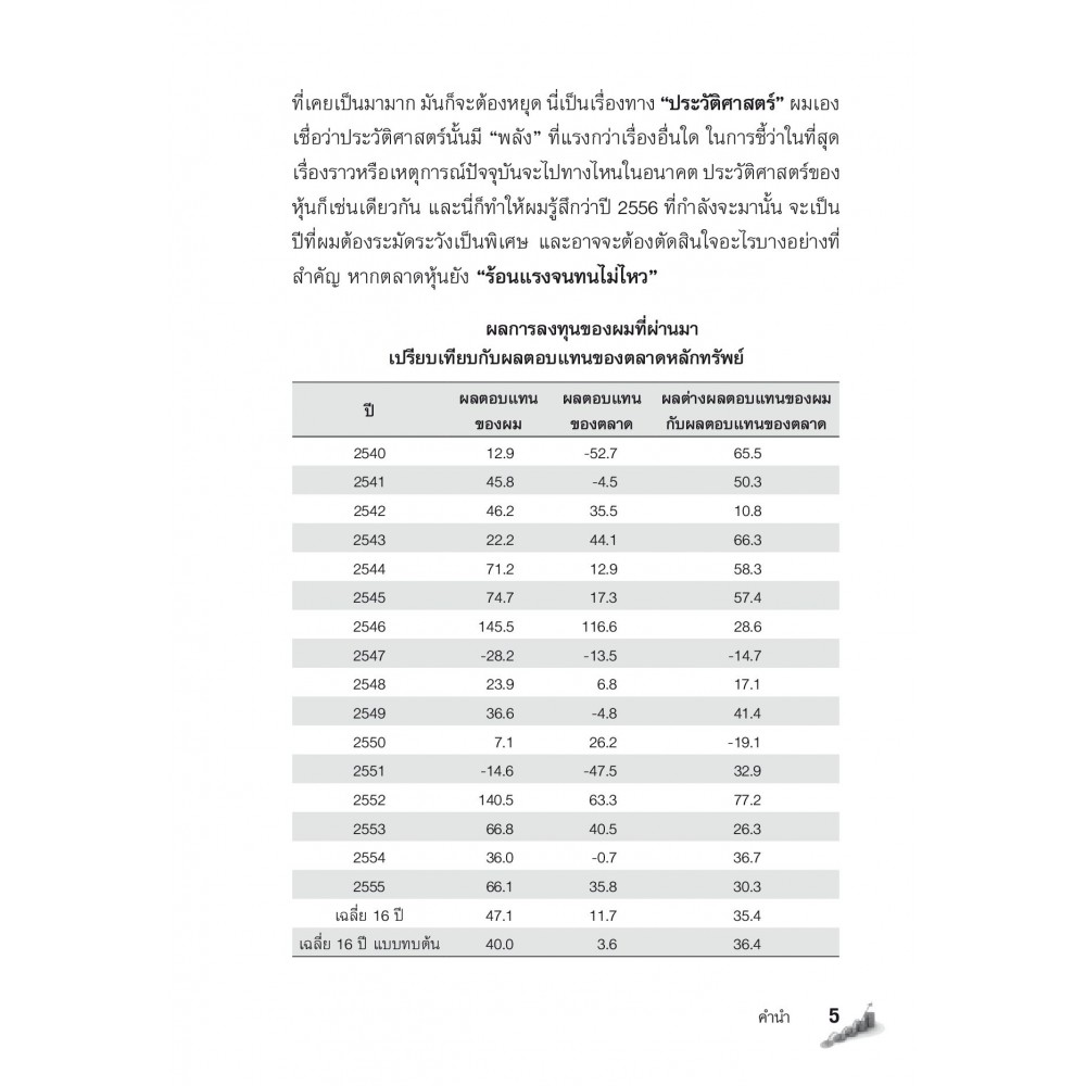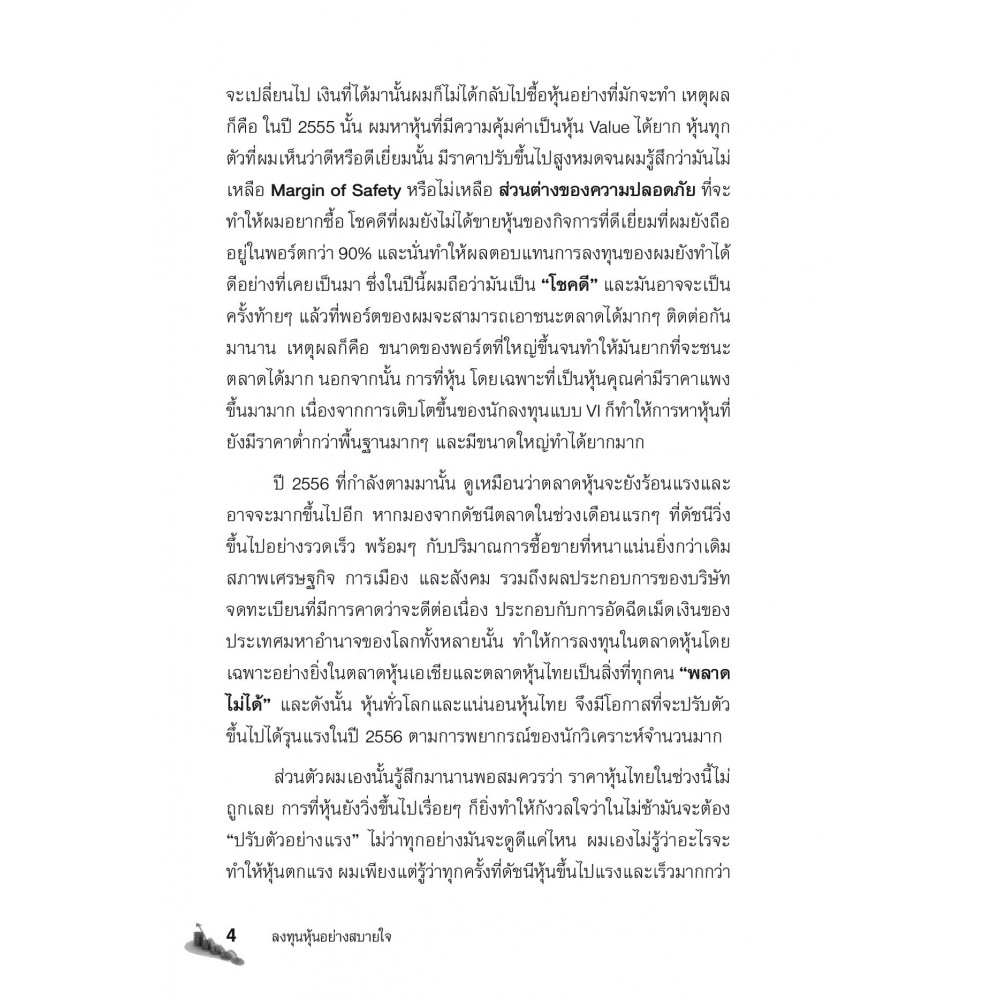 คุณผู้อ่านไปรู้จักกับเทคนิคการเล่นหุ้นอย่างสบายใจ ไม่เครียด ใช้เวลาไม่มาก และได้กำไรงาม ที่นักลงทุนแบบ VI ต้องรู้ ไม่ว่าจะเป็นการตั้งความหวังผลตอบแทนระยะยาวจากการลงทุนในหุ้นให้เหมาะสม นั่นคือผลตอบแทนทบต้นต่อปีเฉลี่ยประมาณ 10% เลือกซื้อหุ้นที่เน้นความปลอดภัยของตัวกิจการเป็นหลัก หุ้นที่มีความเปลี่ยนแปลงช้าในด้านของธุรกิจ เป็นกิจการที่ไม่ล้ำสมัย แต่ไม่ล้าสมัย เป็นกิจการที่เป็น "ผู้นำ" รวมถึงต้องมีการกระจายความเสี่ยงในการถือหุ้นอย่างเหมาะสม และตั้งกฎคร่าวๆ ว่าในแต่ละปีจะมีการซื้อขายหุ้นไม่เกินกี่เปอร์เซ็นต์ของพอร์ตการลงทุน กฎง่ายๆ คือ ปริมาณของการซื้อขายหุ้นในแต่ละปีไม่ควรจะเกิน 2 เท่าของขนาดพอร์ตของตนเอง ที่สำคัญอย่าสนใจการขึ้นลงของหุ้นแต่ละตัวมากนัก พยายามมองภาพรวมของพอร์ตหุ้นว่าเติบโตขึ้นหรือลดลง ทุกไตรมาสควรติดตามดูว่าผลประกอบการของบริษัทเป็นอย่างไร มันเป็นไปอย่างที่คาดไว้ไหม เช่น ดีขึ้น ดีขึ้นมาก แย่ลง แย่ลงมาก เพราะอะไร เมื่อได้รับปันผลมา อย่านำเงินไปใช้หรือเอาออกจากพอร์ตถ้าไม่จำเป็น นำปันผลนั้นกลับไปซื้อหุ้นกลับเข้าพอร์ต เพื่อทำพอร์ตให้เติบโตขึ้นเรื่อยๆ และเป็นหลักการลงทุนแบบทบต้น ซึ่งจะทำให้พอร์ตโตเร็วขึ้นแบบทวีคูณ นอกจากนี้ทุกปีควรคำนวณหาผลตอบแทนประจำปี ดูว่าเราทำได้เท่าไร เมื่อเทียบกับผลตอบแทนของตลาดและเทียบกับเป้าหมายระยะยาวของตนเอง ซึ่งก็คือ 10-15% ที่ตั้งไว้ ถ้าทำได้ดีกว่าตลาดและดีกว่าเป้า ก็ควรจะดีใจโดยไม่ต้องไปเปรียบเทียบกับคนอื่น และทั้งหมดนี้คือกลวิธีการลงทุนที่จะทำให้คุณมีความสบายใจ ใช้เวลาไม่มากและได้ผลดี โดยเฉพาะสำหรับคนที่มีงานประจำเต็มเวลา สารบัญ - VI Gen x - VI กับชีวจิต - ความเชื่อที่อันตรายของ VI - ตามรอยบัฟเฟตต์ - จิตสำนึกกับการลงทุน - ลงทุนหุ้นอย่างสบายใจ - กลยุทธ์ยามหุ้นแพง - Discount - Premiums - ศึกชิงตา ฯลฯ