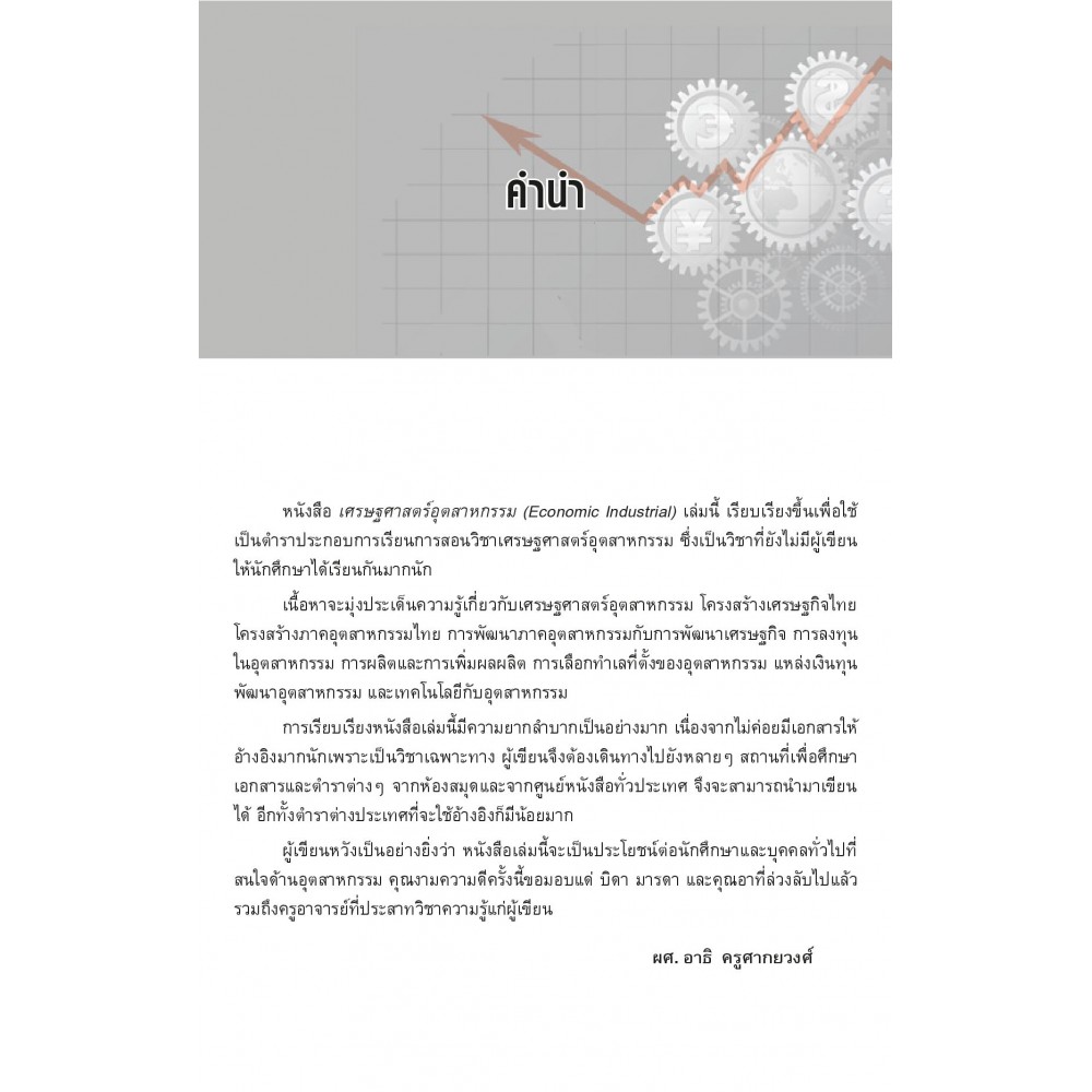ให้เนื้อหาที่สำคัญเกี่ยวกับเศรษฐศาสตร์อุตสาหกรรม เป็นหนังสือที่มมีคนเขียนน้อยมากผู้เขียนจึงได้ตั้งใจเรียบเรียงขึ้นเพื่อให้ผู้อ่านสามารถทำความใจได้ด้วยตนเอง ในประเด็นโครงสร้างอุตสาหกรรมของไทย การพัฒนา และการลงทุนในภาคอุตสาหกรรมการผลิต การเพิ่มผลผลิต การเลือกทำเลที่ตั้งแหล่งเงินลงทุน และระบบเทคโนโลยีอุตสาหกรรม อธิบายเนื้อหาโดยละเอียด เป็นลำดับขั้นตอน พร้อมบทสรุป และคำถามสำหรับทบทวนความรู้ความเข้าใจ เหมาะสำหรับ นักเรียน นักศึกษา และอาจารย์ เพื่อใช้เรียนและสอนในระดับ ปวส. และปริญญาตรีในวิชาเศรษฐศาสตร์อุตสาหกรรม