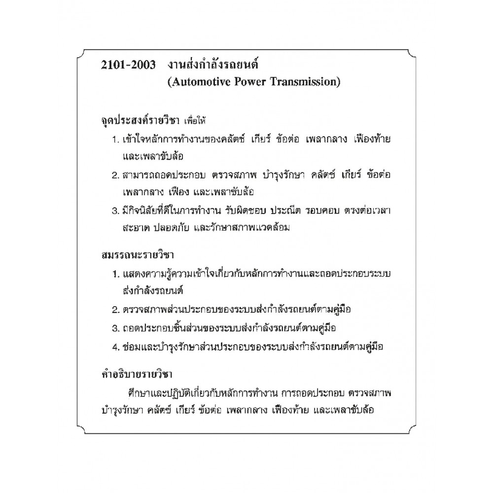 มีเนื้อหาทั้งภาคทฤษฎีและปฏิบัติตามขั้นตอนในการตรวจสอบ การถอดประกอบ พร้อมรูปภาพของขั้นตอนที่ถูกต้อง นอกจากนี้ยังได้รวบรวมเนื้อหาในด้านการพัฒนาทางเทคโนโลยีของระบบส่งกำลังรถยนต์อีกด้วย