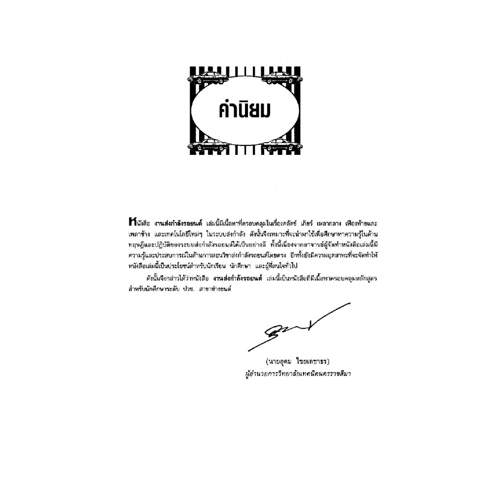 มีเนื้อหาครอบคลุมการทำงานของระบบส่งกำลังรถยนต์ เช่น คลัตซ์ กระปุกเกียร์ กระปุกเกียร์โอเวอร์ไดรฟ์ เพลากลาง และเฟืองท้าย เป็นต้น นอกจากนี้ยังได้บรรจุเนื้อหาทั้งภาคทฤษฎีและปฏิบัติตามขั้นตอนในการตรวจสอบ การถอดประกอบ พร้อมรูปภาพของขั้นตอนที่ถูกต้อง รวมถึงรวมเนื้อหาในด้านการพัฒนาทางเทคโนโลยีของระบบส่งกำลังรถยนต์ เช่น ระบบขับเคลื่อน 4 ล้อ ทั้งแบบบางเวลากับแบบตลอดเวลา และเกียร์อัตโนมัติควบคุมด้วยอิเล็กทรอนิกส์ ท้ายเล่มยังมีแบบฝึกหัดให้ได้ทบทวนความรู้ความเข้าใจไปพร้อมกันอีกด้วย