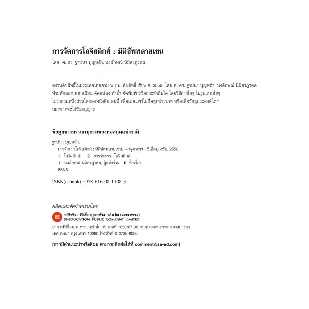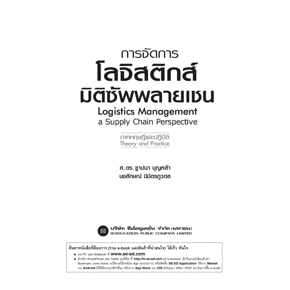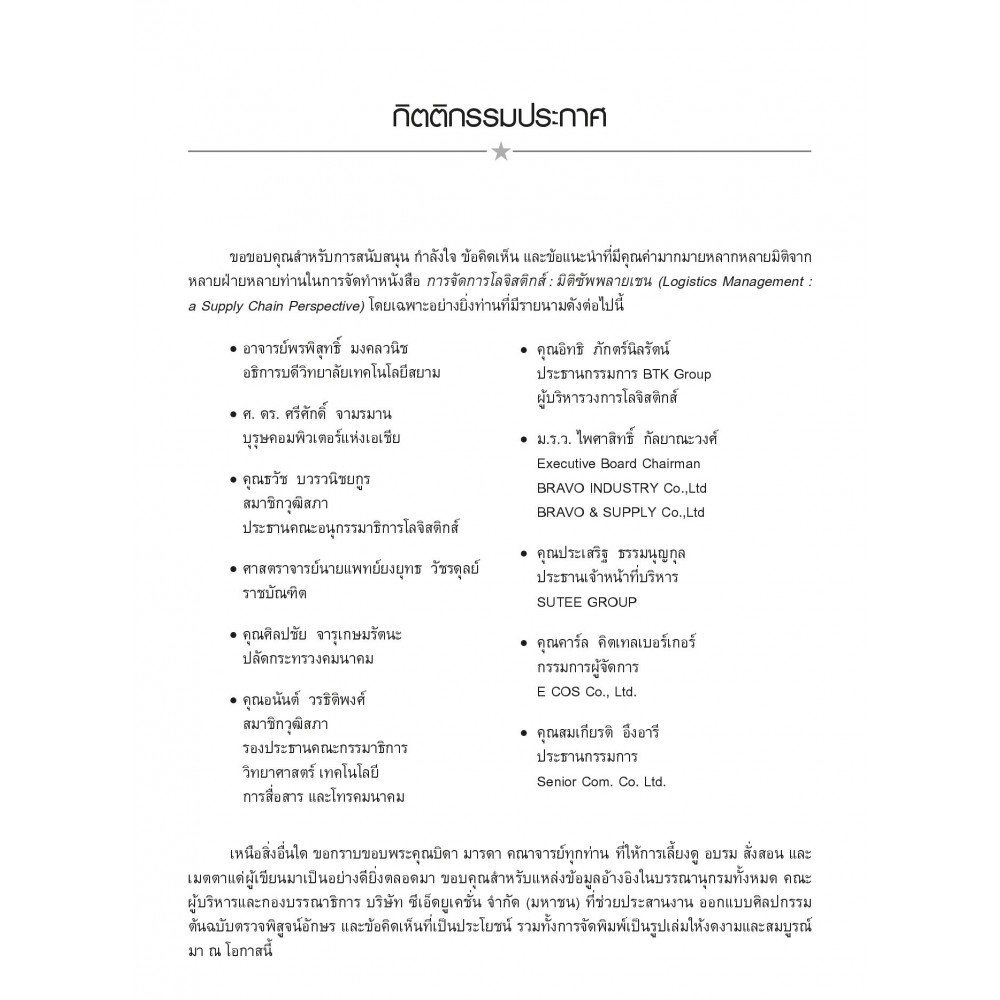 "การจัดการโลจิสติกส์ : มิติซัพพลายเชน" เล่มนี้ มุ่งเน้นองค์ความรู้ทั้งภาคทฤษฎีและภาคปฏิบัติในกระบวนการออกแบบ การวางแผน การจัดหา การจัดการสินค้าคงคลัง การคลังสินค้า การขนส่ง โลจิสติกส์ย้อนกลับ การบริการลูกค้า การเงิน ระบบสารสนเทศเพื่อโลจิสติกส์ ข้อตกลงการส่งมอบสินค้าระหว่างประเทศฉบับใหม่ (Incoterms 2010) นำเสนอพร้อมแบบฝึกหัดท้ายบท และกรณีศึกษา ที่ไม่เพียงเหมาะสมกับคณาจารย์และนักศึกษาระดับปริญญาตรี ปริญญาโทเท่านั้น หากยังเป็นประโยชน์อย่างยิ่งกับผู้ประกอบการ นักธุรกิจ นักบริหาร ผู้จัดการ หัวหน้าแผนก พนักงาน และประชาชนผู้สนใจทั่วไปอีกด้วย