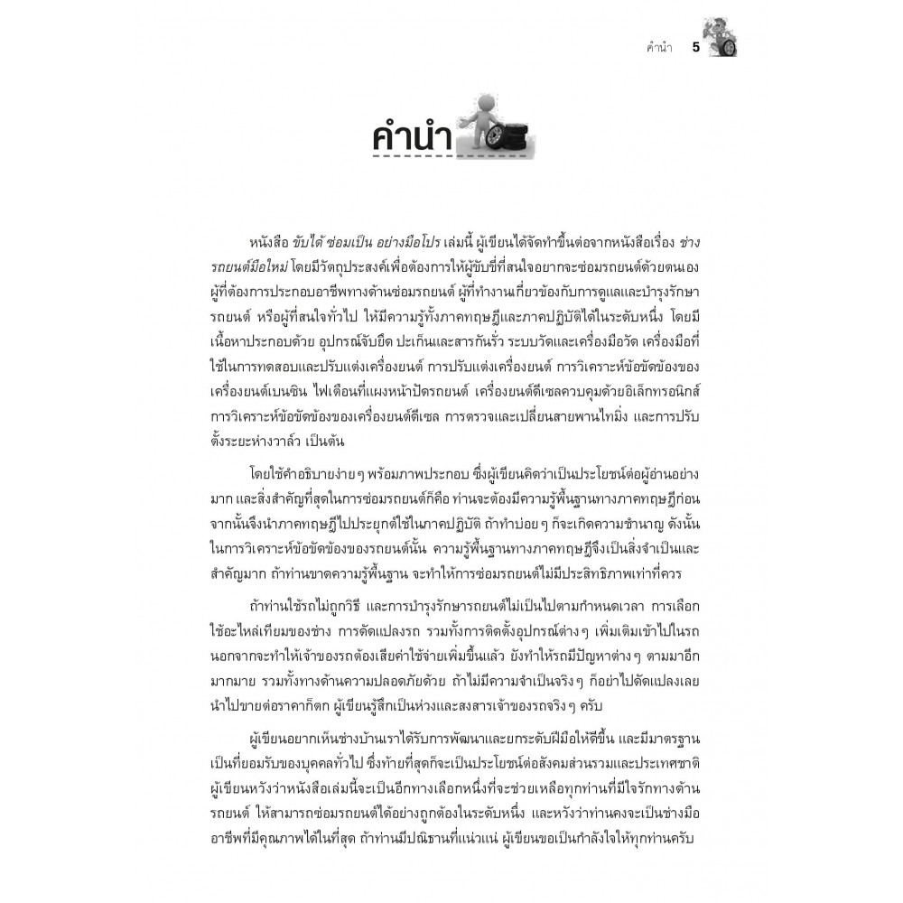 ผู้ขับขี่และช่างควรมีไว้ รวบรวมสาระที่เป็นประโยชน์ทางด้านรถยนต์ไว้มากมายเกินคุ้ม ให้ความรู้ทั้งทางทฤษฎีและปฏิบัติ โดยมีเนื้อหาประกอบด้วยอุปกรณ์จับยึด ปะเก็นและสารกันรั่ว ระบบวัดและเครื่องมือวัด เครื่องมือที่ใช้ในการทดสอบและปรับแต่งเครื่องยนต์ การปรับแต่งเครื่องยนต์ การวิเคราะห์ข้อขัดข้องของเครื่องยนต์เบนซิน ไฟเตือนที่แผงหน้าปัดรถยนต์ เครื่องยนต์ดีเซลควบคุมด้วยอิเล็กทรอนิกส์ การวิเคราะห์ข้อขัดข้องของเครื่องยนต์ดีเซล การตรวจและเปลี่ยนสายพานไทมิ่ง และการปรับตั้งระยะห่างวาล์ว โดยใช้คำอธิบายง่ายๆ พร้อมภาพประกอบชัดเจน ทำให้เข้าใจได้ง่ายขึ้น เหมาะสำหรับผู้ขับขี่ที่ต้องการซ่อมรถยนต์ด้วยตนเอง และช่างซ่อมรถยนต์ที่ต้องการพัฒนาฝีมือของตนเองให้สูงขึ้น ตลอดจนผู้ที่สนใจทั่วไป