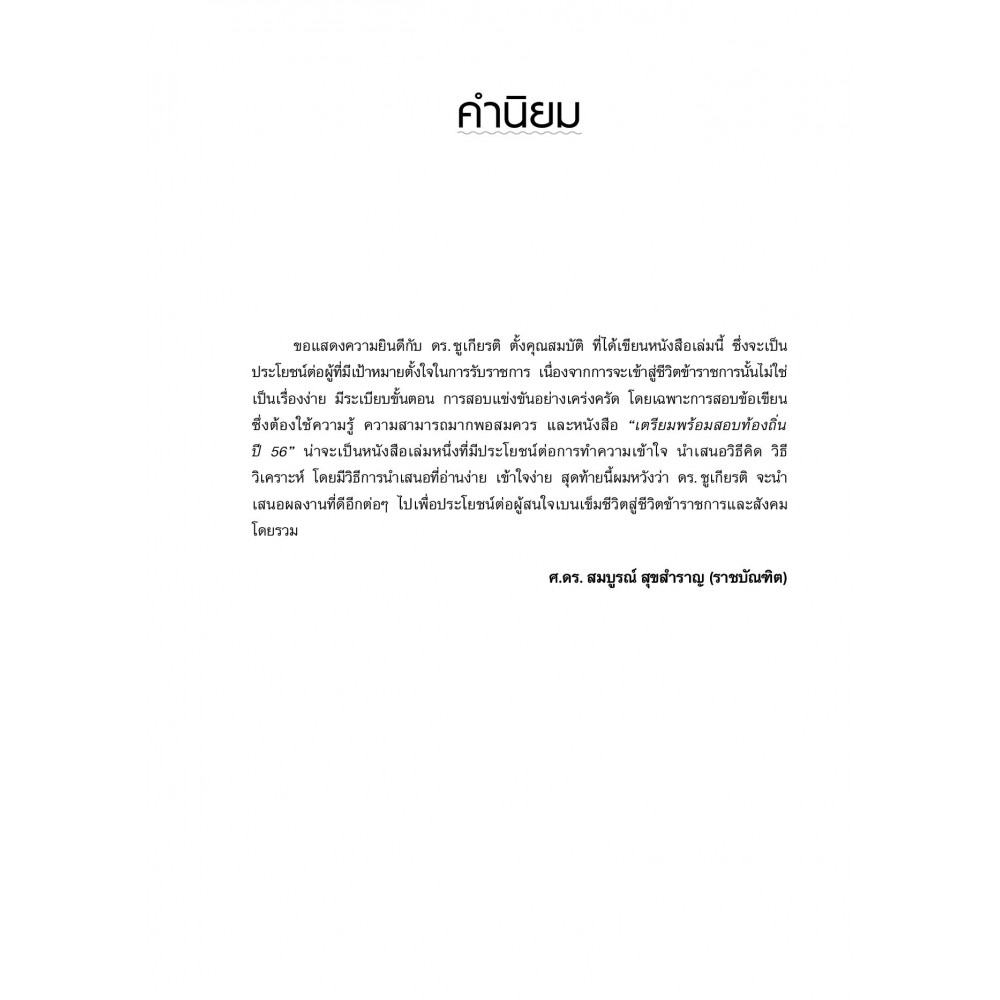 ขอแสดงความยินดีกับ ดร.ชูเกียรติ ตั้งคุณสมบัติ ที่ได้เขียนหนังสือเล่มนี้ ซึ่งจะเป็นประโยชน์ต่อผู้ที่มีเป้าหมายตั้งใจในการรับราชการ เนื่องจากการจะเข้าสู่ชีวิตข้าราชการนั้น ไม่ใช่เป็นเรื่องง่าย มีระเบียบขั้นตอน การสอบแข่งขันอย่างเคร่งครัด โดยเฉพาะการสอบข้อเขียน ซึ่งต้องใช้ความรู้ ความสามารถพอสมควร และหนังสือ "เตรียมพร้อมสอบท้องถิ่นปี 56" น่าจะเป็นหนังสือเล่มหนึ่งที่มีประโยชน์ต่อการทำความเข้าใจ