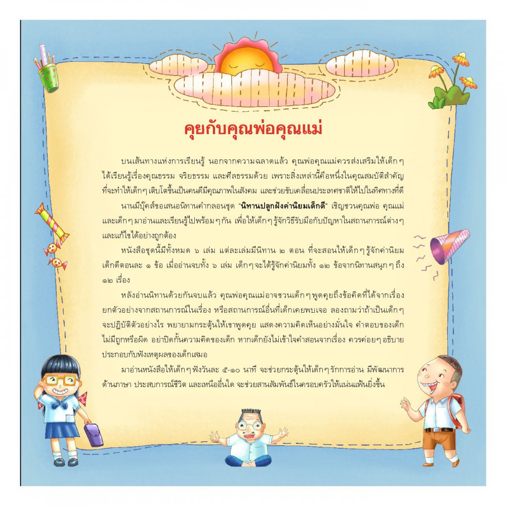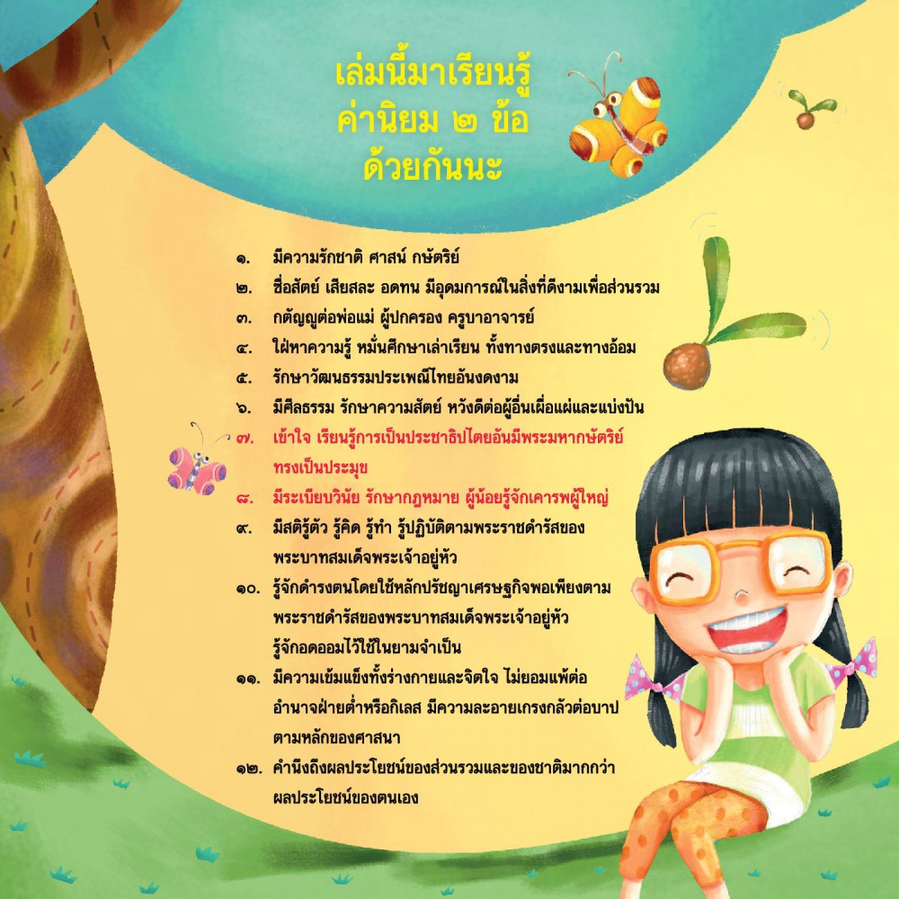 นิทานคำกลอนส่งเสริมค่านิยมหลักของคนไทยทั้ง 12 ประการ เล่มนี้มีเนื้อหาส่งเสริมให้เด็กๆ รู้จักกฎกติกาตามหลักการประชาธิปไตย และมีระเบียบวินัย