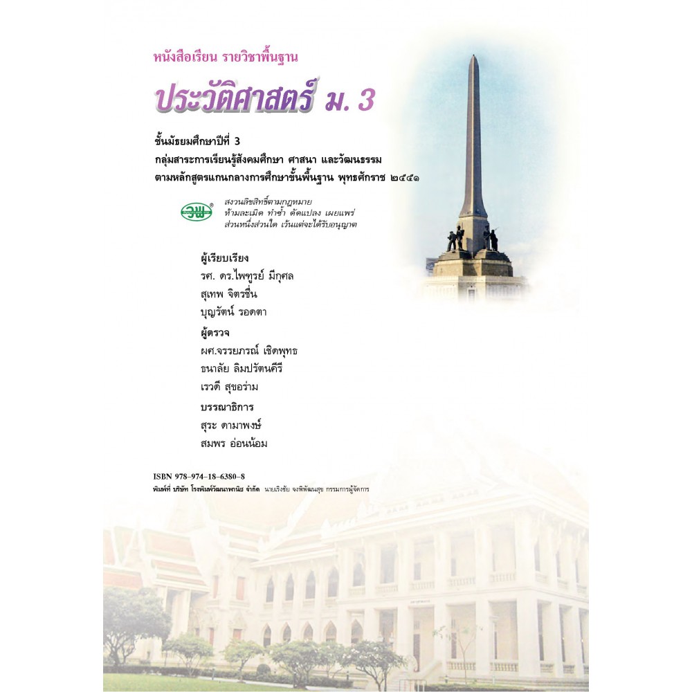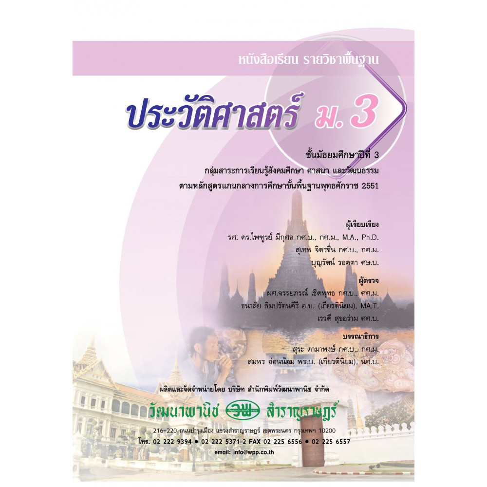 หนังสือเรียนรายวิชาประวัติศาสตร์ ชั้นมัธยมศึกษาปีที่ 3
