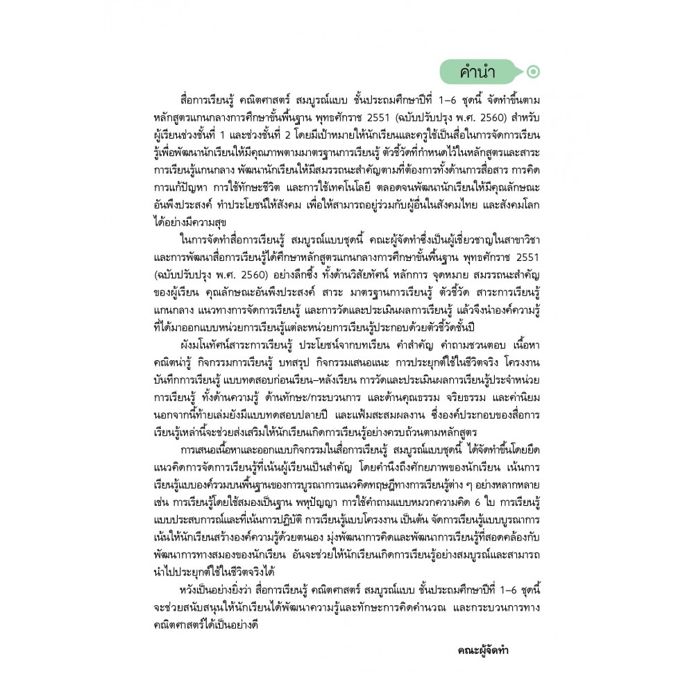 สื่อการเรียนรู้สมบูรณ์แบบวิชาคณิตศาสตร์ ชั้นประถมศึกษาปีที่ 1