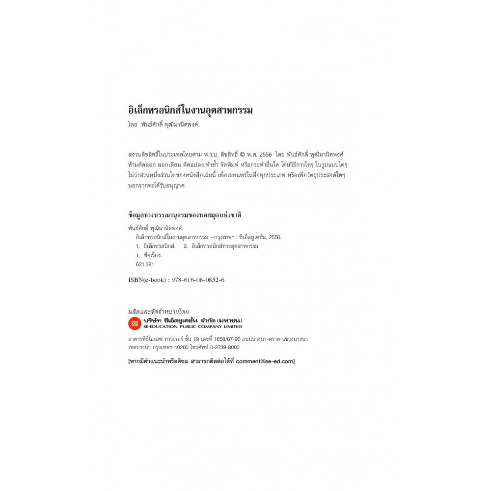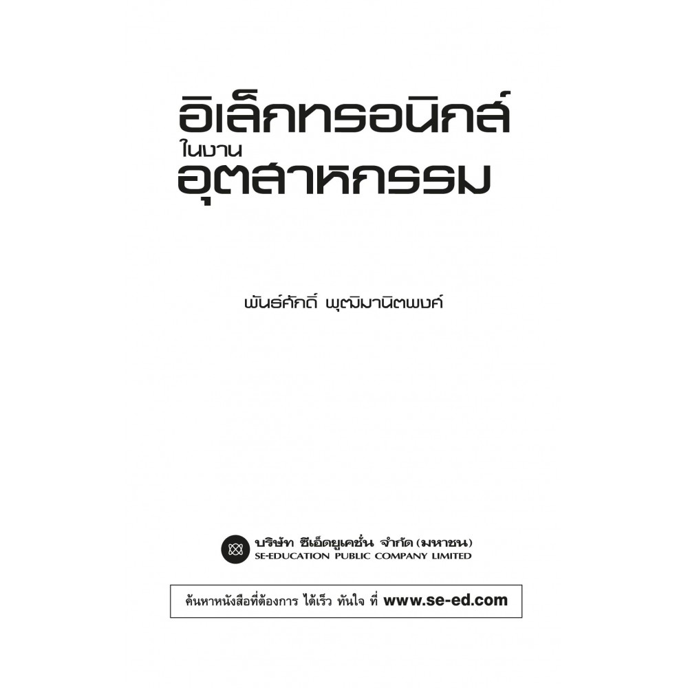 ให้เนื้อหาที่สำคัญเกี่ยวกับอิเล็กทรอนิกส์ในงานอุตสาหกรรม ครอบคลุมพื้นฐานอิเล็กทรอนิกส์ที่ใช้งานอุตสาหกรรม ทั้งทฤษฎีทางด้านสารกึ่งตัวนำ อุปกรณ์สารกึ่งตัวนำชนิดต่างๆ อุปกรณ์ทำงานด้วยสนามแม่เหล็ก อนาลอกไอซี ดิจิตอลไอซี และวงจรทำงานชนิดต่างๆ ที่เกี่ยวข้อง เนื้อหาแต่ละบทประกอบด้วยส่วนทฤษฎี และส่วนปฏิบัติ ซึ่งทั้งสองส่วนนี้เกี่ยวข้องสัมพันธ์กัน หลังจากที่ได้ศีกษาทฤษฎีแล้ว สามารถผึกทักษะด้านปฏิบัติต่อเนื่องกันไปได้ ทำให้เกิดแนวความคิดที่สามารถนำไปประยุกต์ใช้งานได้ เหมาะสำหรับบุคคลทั่วไปที่สนใจด้านอิเล็กทรอนิกส์