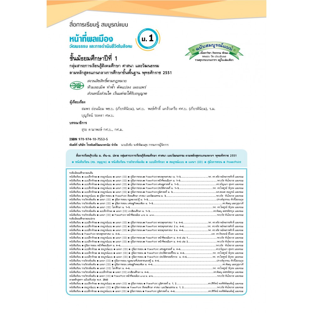 สื่อการเรียนรู้สมบูรณ์แบบหน้าที่พลเมืองฯ ชั้นมัธยมศึกษาปีที่ 1