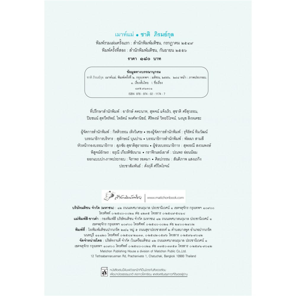 วีรกรรมสุดฮาของแม่ม่วยเซ็กที่ผู้อ่านจะต้องนั่งกุมท้องด้วยความขำ และต้องนั่งเช็ดน้ำตาด้วยความซาบซึ้ง จนอยากกลับไปนอนหนุนตักอุ่นๆ ของแม่ น่าติดตามว่า ชาติ ภิรมย์กุลจะเมาท์อย่างไรไม่ให้แม่เอาตะหลิวเขวี้ยงกบาล