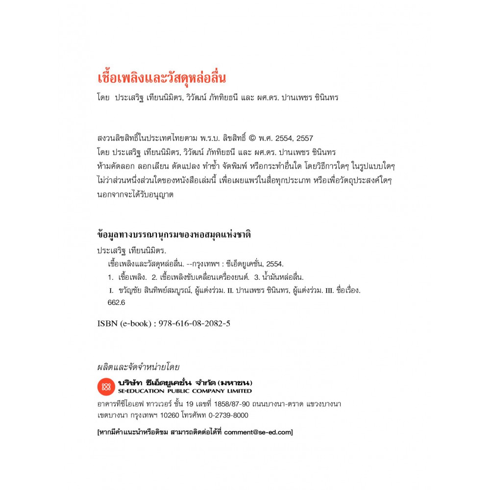 "เชื้อเพลิงและวัสดุหล่อลื่น" เล่มนี้ ได้รวบรวมและอธิบายถึงคุณสมบัติของเชื้อเพลิงนำมันหล่อลื่น และสารหล่อลื่นชนิดต่างๆ ที่เหมาะสมกับงานแต่ละประเภท รวมทั้งกล่าวถึงความสำคัญของสารเพิ่มคุณภาพต่างๆ พร้อมทั้งเหตุผลที่ใช้ เพื่อที่จะได้นำไปประกอบการตัดสินใจต่อการพิจารณาเลือกใช้ได้อย่างถูกต้อง ทั้งยังได้รวบรวมตารางและแผนภูมิที่แสดงถึงคุณสมบัติ การเปรียบเทียบและการเปลี่ยนแปลงหน่วยที่ใช้วัดค่าต่างๆ ที่มีความสำคัญต่อการศึกษาในเรื่องของเชื้อเพลิงและสารหล่อลื่นที่ใช้เป็นมาตรฐานตามที่สถาบันต่างๆ รับรอง
