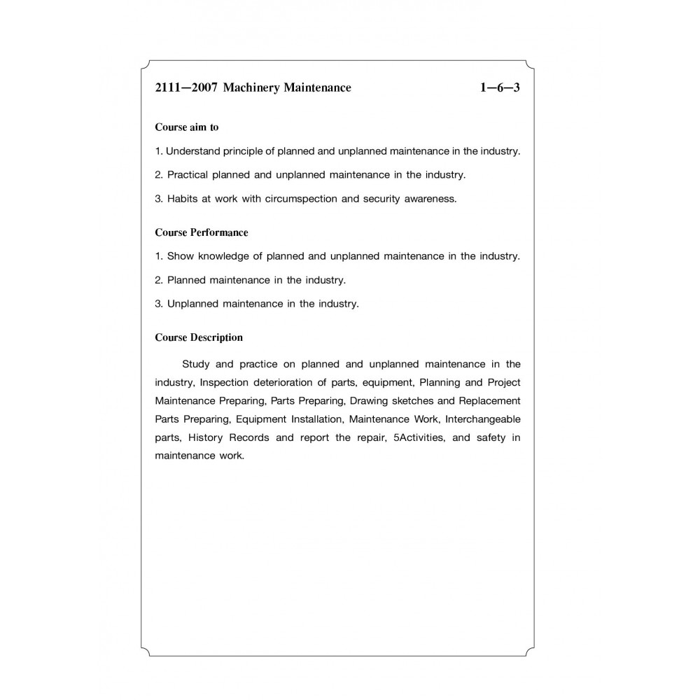 งานซ่อมบำรุงเครื่องจักรกล : Machinery Maintenance (Bilingual Book) (รหัสวิชา 2111-2007)