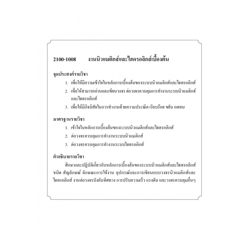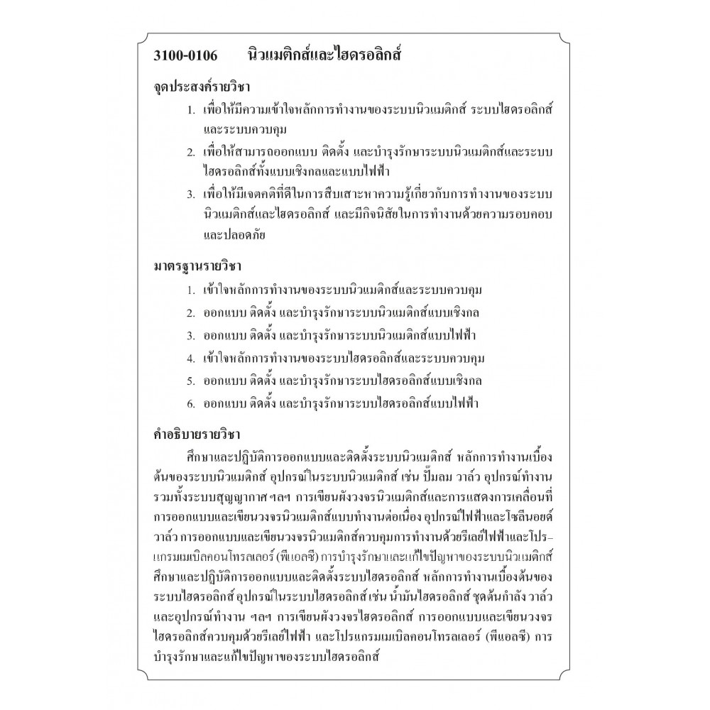 ประกอบการเรียนการสอนวิชางานนิวแมติกส์และไฮดรอลิกส์เบื้องต้น (2100-1008) ในระดับ ปวช. และวิชานิวแมติกส์และไฮดรอลิกส์ (3100-0106) ในระดับปวส. และวิชานิวแมติกส์และไฮดรอลิกส์ในระดับปริญญาตรี มีเนื้อหาตรงตามหลักสูตรของสำนักงานคณะกรรมการการอาชีวศึกษา กระทรวงศึกษาธิการ โดยกล่าวถึงการพัฒนาระบบการควบคุมประเภทต่างๆ ในงานนิวแมติกส์และไฮดรอลิกส์ เพื่อให้ทันต่อการเปลี่ยนแปลงของเทคโนโลยีสมัยใหม่ ระบบนิวแมติกส์ควบคุมด้วยลมอัด ระบบนิวแมติกส์ควบคุมด้วยไฟฟ้า ระบบนิวแมติกส์ควบคุมด้วยโปรแกรมเมเบิลลอจิกคอนโทรลเลอร์ (พีแอลซี) ระบบไฮดรอลิกส์ ระบบไฮดรอลิกส์ควบคุมด้วยไฟฟ้า ระบบไฮดรอลิกส์ควบคุมด้วยโปรแกรมเมเบิลลอจิกคอนโทรลเลอร์ (พีแอลซี) และการบำรุงรักษาระบบนิวแมติกส์และไฮดรอลิกส์ อีกทั้งมีใบปฏิบัติงานประกอบการทดลองด้วย