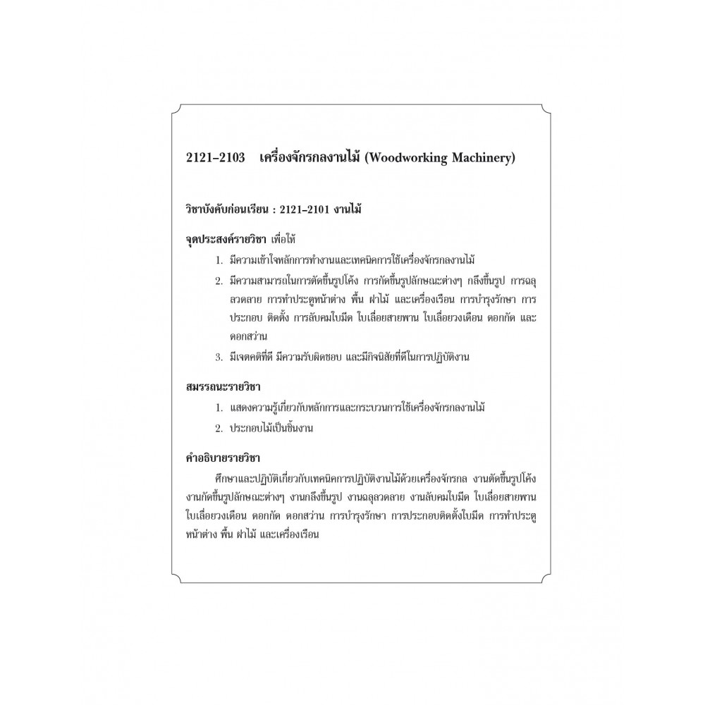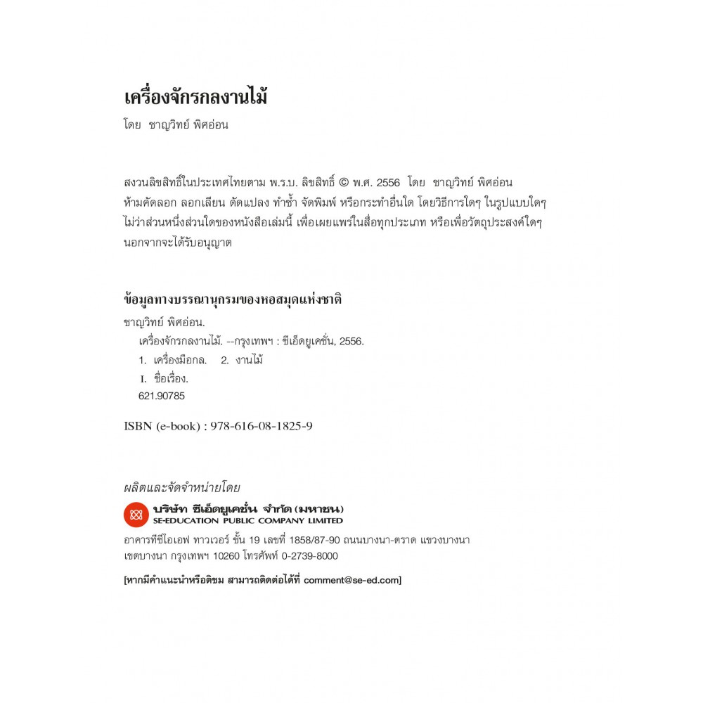 "เครื่องจักรกลงานไม้" เล่มนี้ มีเนื้อหาประกอบไปด้วย เครื่องจักรกลที่ใช้ทำงานไม้ เป็นความรู้พื้นฐานเกี่ยวกับความปลอดภัยในการใช้เครื่องจักรกลแต่ละชนิด ส่วนประกอบของเครื่องจักรกล การลับคม การปรับแต่งเครื่องจักรกลแต่ละชนิด วิธีการทำงานและการบำรุงรักษา พร้อมรูปประกอบเพื่อให้เข้าใจได้ง่ายขึ้นในการปฏิบัติงาน บทสรุป แบบฝึกหัดท้ายบท รวมทั้งใบงานและเกณฑ์การตรวจผลงาน ตรงตามหลักสูตรของสำนักงานคณะกรรมการการอาชีวศึกษา กระทรวงศึกษาธิการ