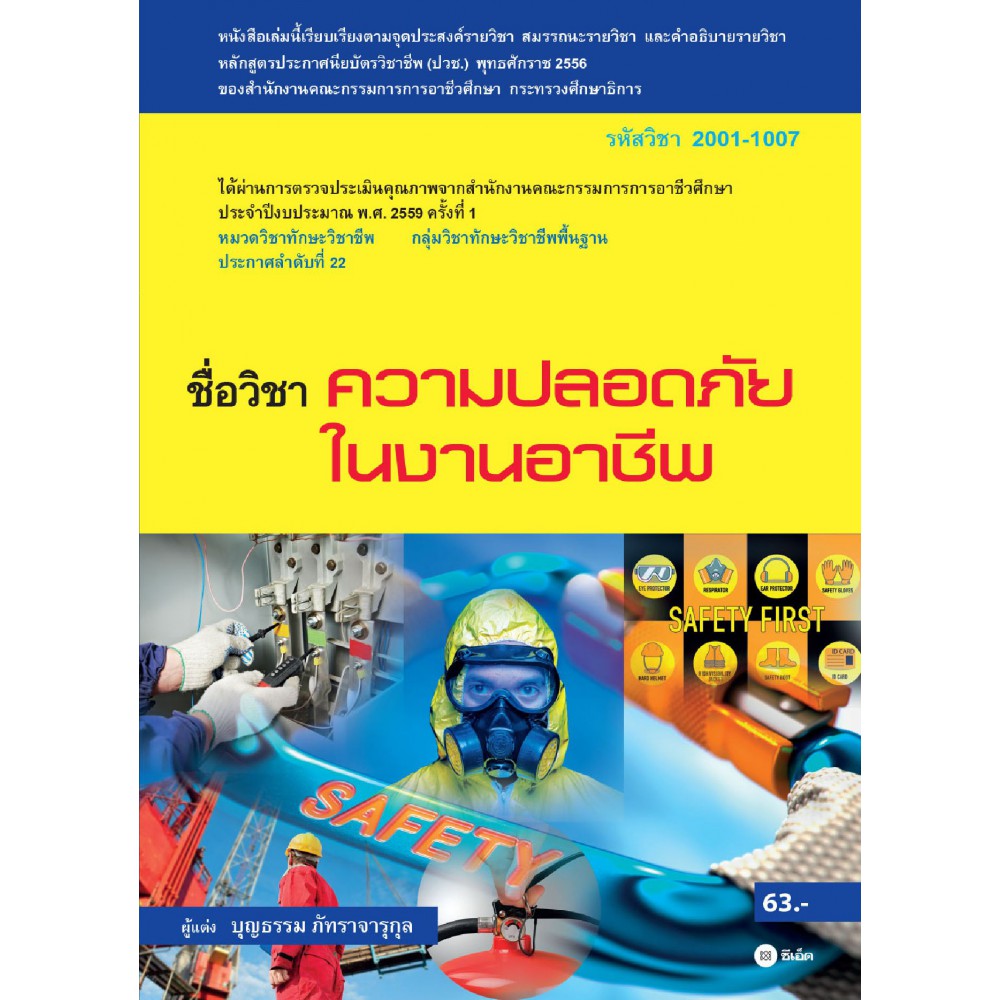 "ความปลอดภัยในงานอาชีพ รหัสวิชา 2001-1007" เล่มนี้ เหมาะสำหรับนำไปใช้ประกอบการเรียนในหลักสูตรประกาศนียบัตรวิชาชีพ (ปวช.) พุทธศึกราช 2556 ประเภทวิชาอุตสาหกรรม กลุ่มทักษะวิชาชีพพื้นฐาน ซึ่งมีเนื้อหาครอบคลุมและตรงตามหลักสูตรของสำนักงานคณะกรรมการการอาชีวศึกษา กระทรวงศึกษาธิการ โดยมีหลักความปลอดภัยในการทำงานที่เกี่ยวข้องกับงานอาชีพ สาขาต่างๆ และกฎหมายความปลอดภัยในการทำงาน เป็นต้น ในเล่มได้อธิบายเนื้อหาอย่างละเอียด ตัวอย่างหลากหลาย พร้อมแบบฝึกหัดท้ายบท เพื่อช่วยทบทวนความรู้ความเข้าใจ