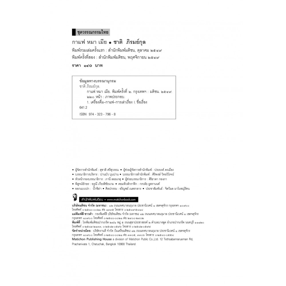 ภาคสองของตามกลิ่นกาแฟ ตอบสนองความต้องการของผุ้อ่านที่ต้องการให้เขียนกาแฟอีก เป็นส่วนผสมที่ลงตัวระหว่างการเขียนเรื่องร้านกาแฟบรรยากาศดี กาแฟอร่อย เล่าเรื่องปั๊กปอน และนินทาภรรยาสุดที่รัก ซึ่งคงถูกอกถูกในแฟนๆทั้งขาประจำและขาจร รับรองว่าอ่านแล้วต้องอมยิ้มแก้มตุ่ยอย่างแน่นอน