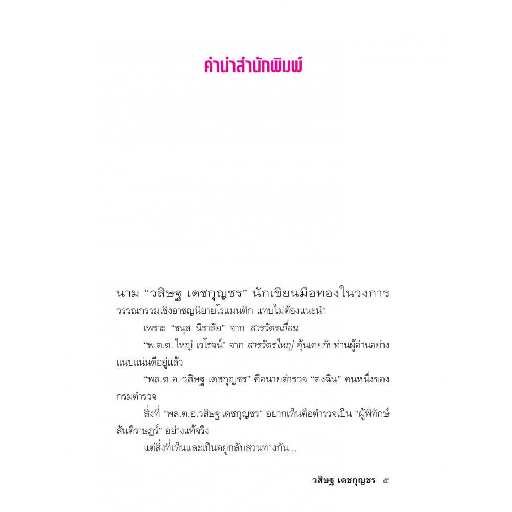 อาชญนิยายที่ตอกย้ำถึงความเป็นธรรมในสังคม หากตราบใดที่เรายังเคารพและให้ความสำคัญต่อกฎหมาย ความถูกต้องในสังคมจะต้องมี ตำรวจดีๆ คงจะได้ไม่มีแต่ในนิยาย ร.ต.ต.พันแสง อัศวโกวิทวัฒก์ คือผู้พิทักษ์สันติราษฎร์ที่ยึดถือความถูกต้องเป็นเข็มทิศ ภายใต้กฎหมายฉบับเดียวกัน ทุกคนมีสิทธิเท่าเทียมกัน ไม่มีคำว่า “นาย-ลูกน้อง” ...แต่ความเป็นธรรมในสังคมต้องมี ตำรวจโจรต้องหมดไป