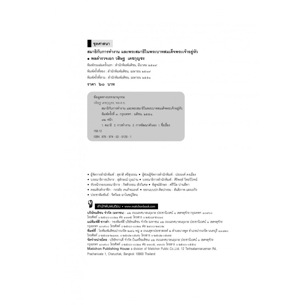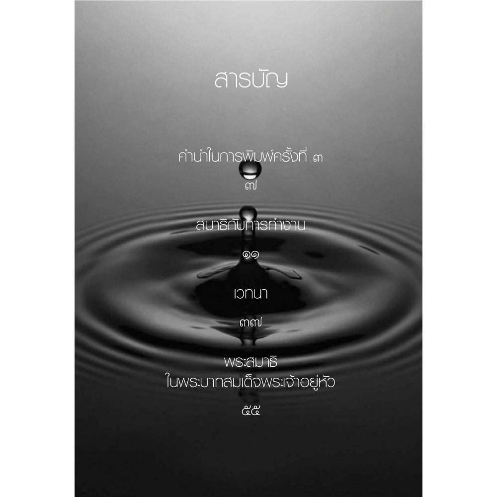 นำไปสู่ความเข้าใจชีวิตและปัญหาอย่างแท้จริง เพราะสมาธิทำให้จิตใจสงบ แม้บางปัญหาจะแก้ไม่ได้ แต่สมาธิจะทำให้เข้าใจและสามารถเผชิญปัญหาได้ด้วยความสงบ ไม่ตื่นตระหนก สมาธิจึงเป็นบันไดขั้นแรกของการแก้ปัญหาอย่างแท้จริง ในเล่มนอกจากจะแนะนำเรื่องการทำสมาธิแล้ว ยังประกอบด้วยส่วนสำคัญอีกส่วนหนึ่งคือ “พระสมาธิในพระบาทสมเด็จพระเจ้าอยู่หัว” เพื่อให้ผู้อ่านได้ทราบถึงการศึกษาและปฏิบัติธรรมของพระบาทสมเด็จพระเจ้าอยู่หัวอีกด้วย