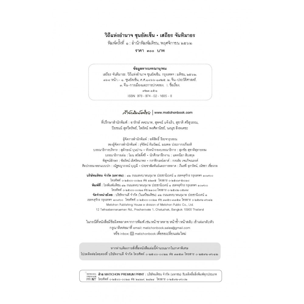 เรื่องเล่าภายใต้หนังสือ "วิถีแห่งอำนาจ ซุนยัตเซ็น" เล่มนี้ จึงรวบรวมประเด็นการต่อสู้ของบุรุษผู้ก่อร่างจีนใหม่ นับแต่คัดง้างความเชื่องมงายเมื่อครั้งเป็นเยาวชนหัวก้าวหน้า ทายท้าความอยุติธรรมและอำนาจเถื่อนที่มีอยู่มากมาย กอปรกับเมื่อกระแสโลกเดินเข้าสู่ยุคประชาธิปไตย เขาจึงทำทุกอย่างเพื่อสถาปนาประชารัฐจนประสบพบชัย อันเป็นจุดเริ่มต้นของแผ่นดินจีนที่ยิ่งใหญ่ตราบเท่าปัจจุบัน